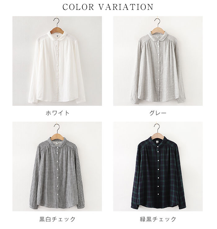 コットン シャツ レディース 長袖 丸 レディースファッション 超目玉商品 ホワイト グレー 黒白チェック 緑黒チェック M L