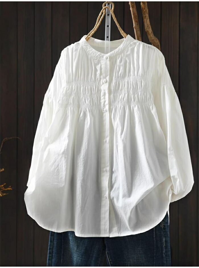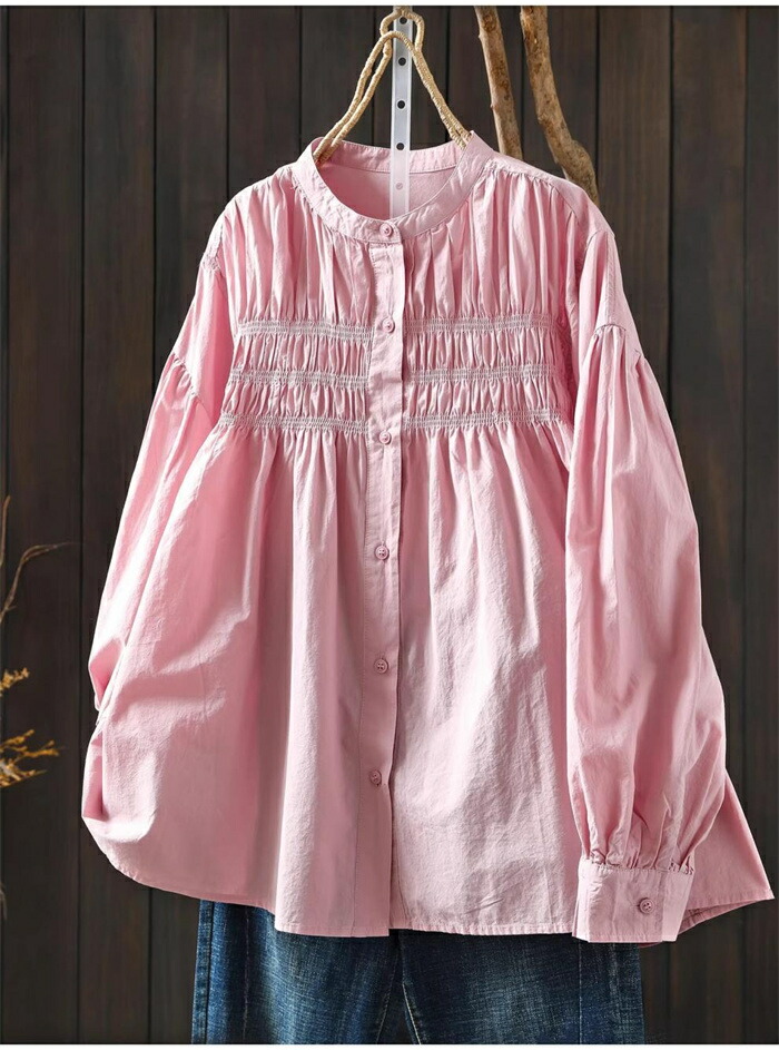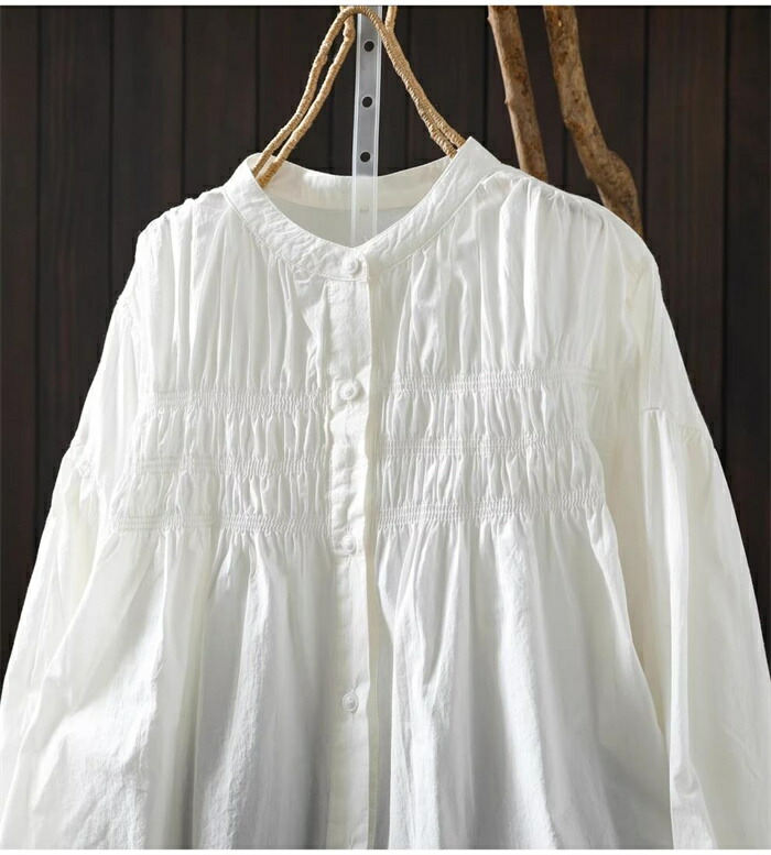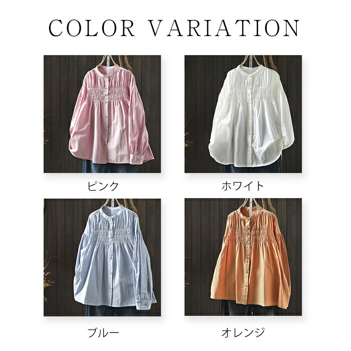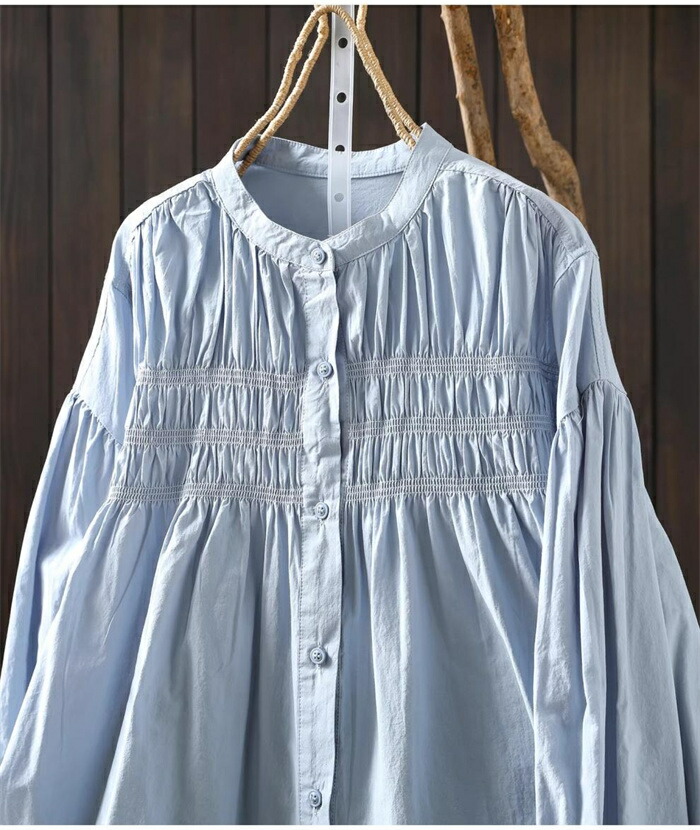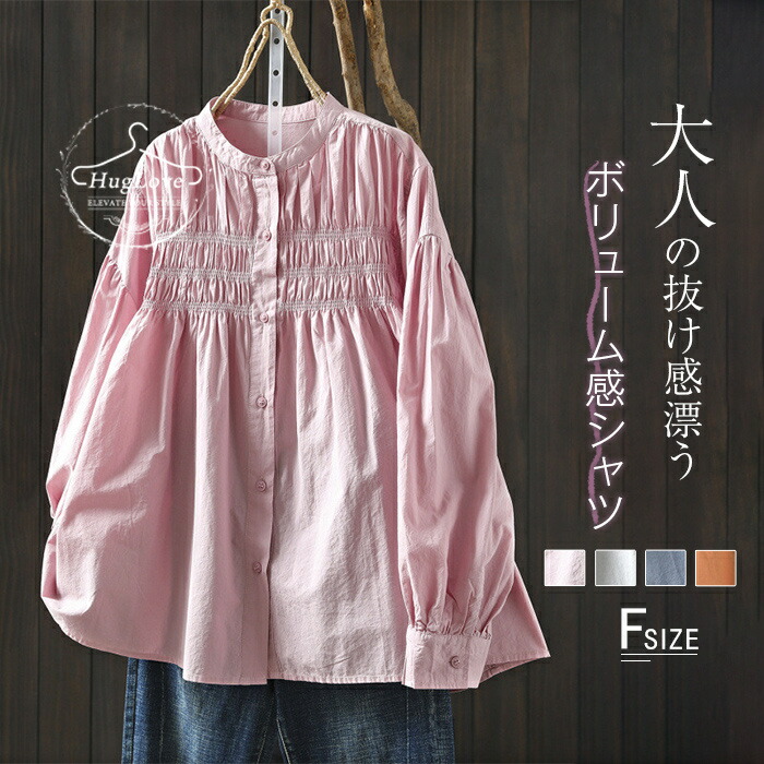 ボリューム袖 シャツ 綿 ブラウス 春 レディースファッション 続々登場 ピンク ホワイト ブルー オレンジ