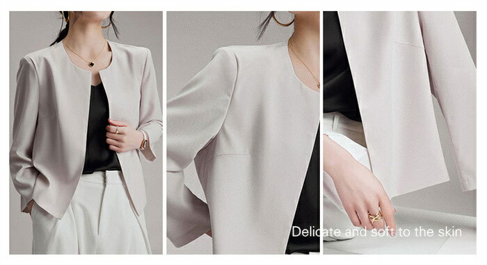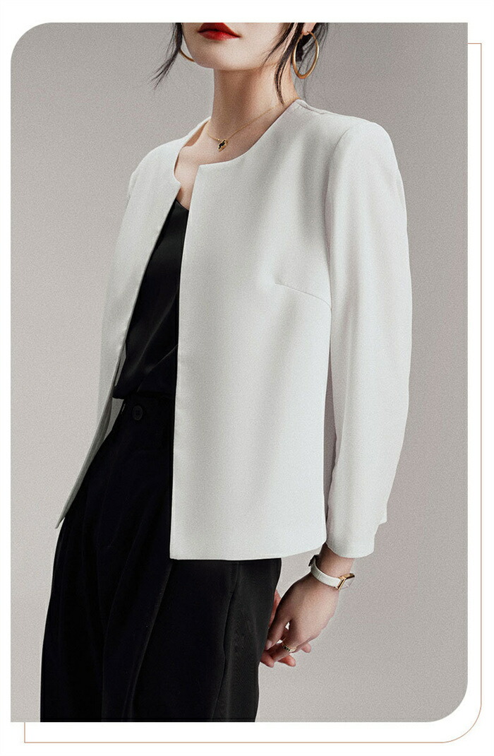 ノーカラー ジャケット レディース テ レディースファッション 続々入荷中 ホワイト ブラック ベージュ M L XL 2XL 3XL