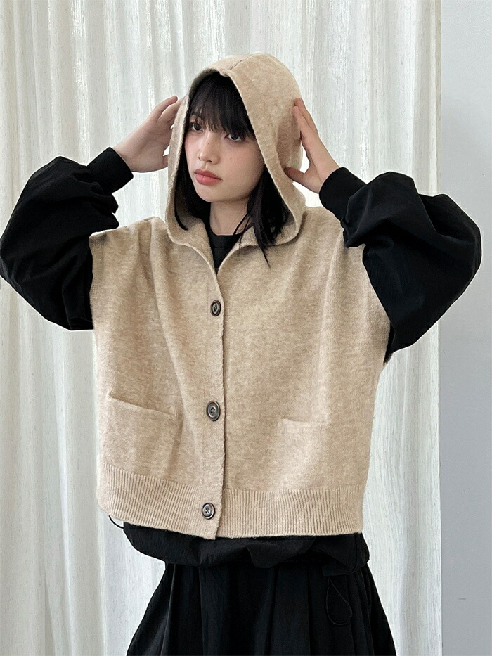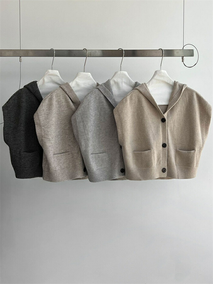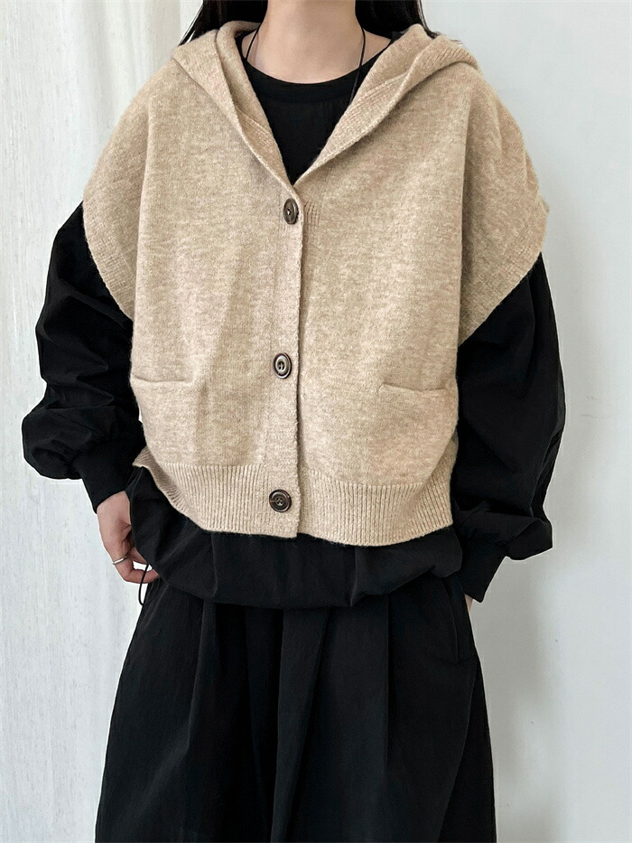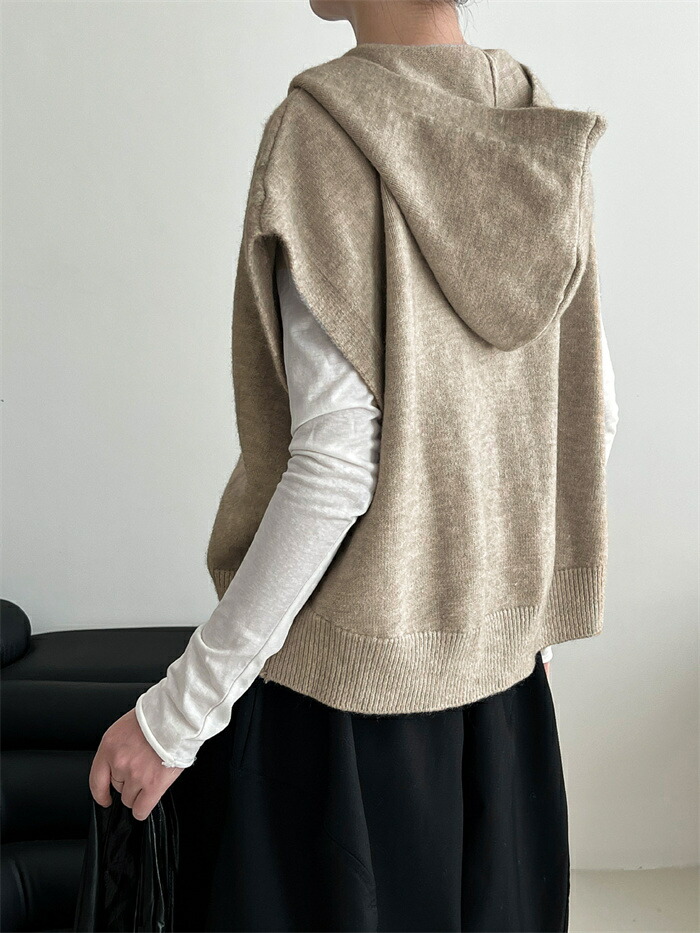 ベスト フード付き レディース ニット トップス ベスト 豊富 ライトグレー ダークグレー ベージュ キャメル