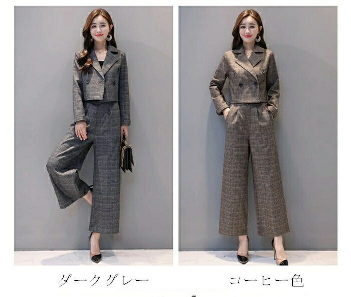 セットアップ レディース パンツスーツ レディースファッション 通販 ダークグレー コーヒー色 S M L XL