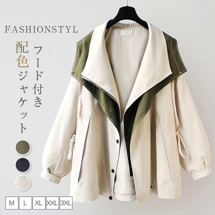 ブルゾン マウンテンパーカー フードジ レディースファッション 豊富な品揃え グリーン ブラック ベージュ XL 2XL 3XL