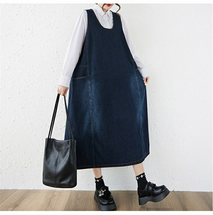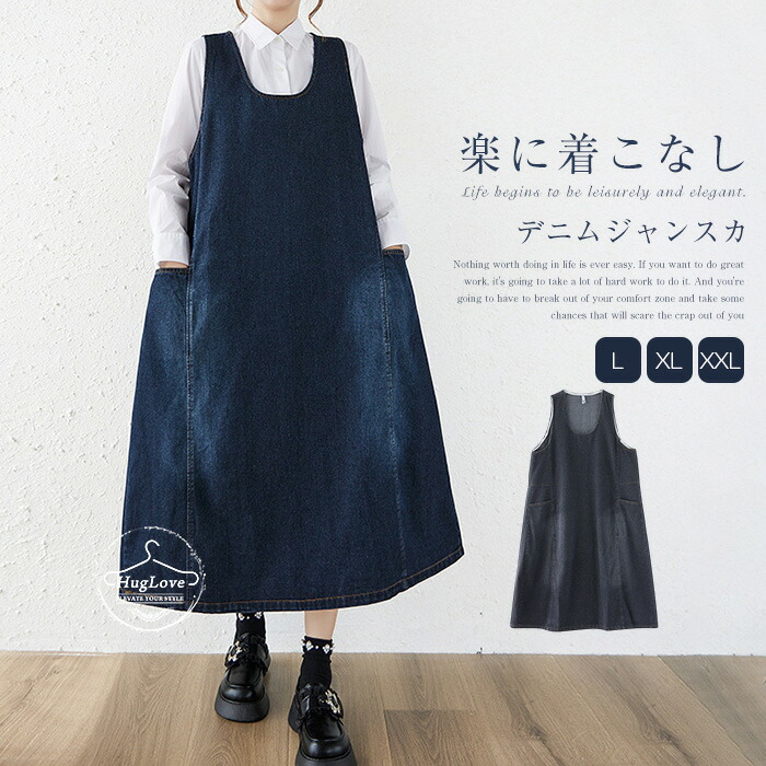 ジャンパースカート デニム サロペット ブルー ブラック L XL 2XL