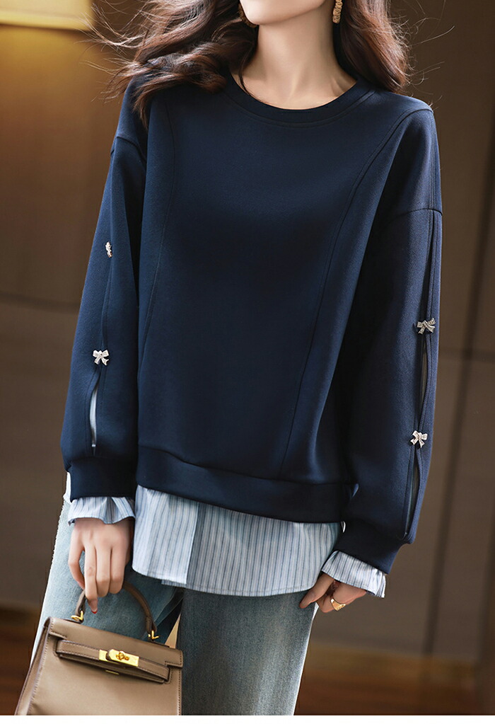 シアースリーブ ドッキングシャツ ボウタイシャツブラウス