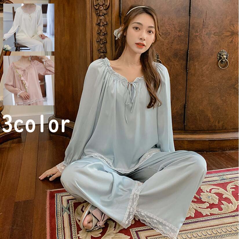 人気 姫系風 2点パジャマ レディース レディース ナイトウェア ルームウェア ルームウェア 上下セット 通販 ホワイト ピンク ブルー M L XL