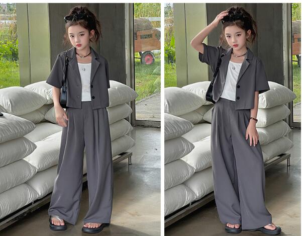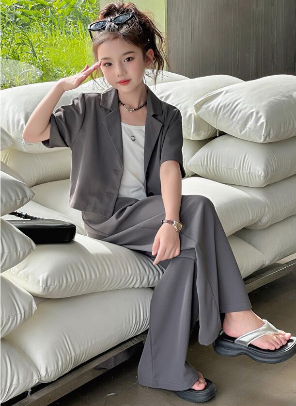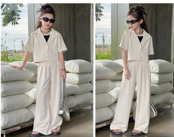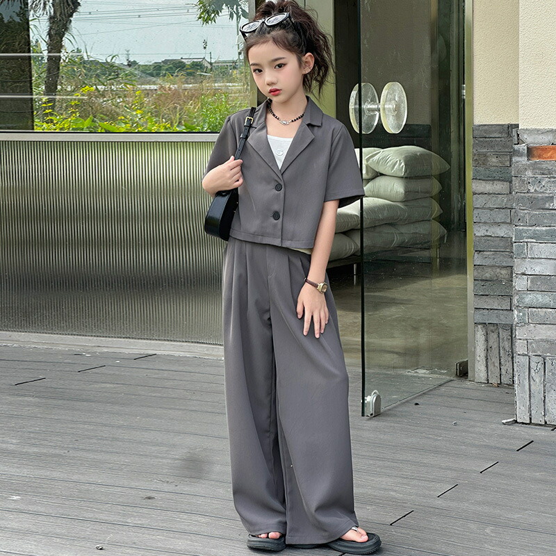 おしゃれ 女の子スーツ お揃い 卒業式 キッズ スーツ カジュアルセットアップ カジュアルパンツセット 続々登場 2点セット(ベージュ) 2点セット(グレー) 120 130 140 150 160 170