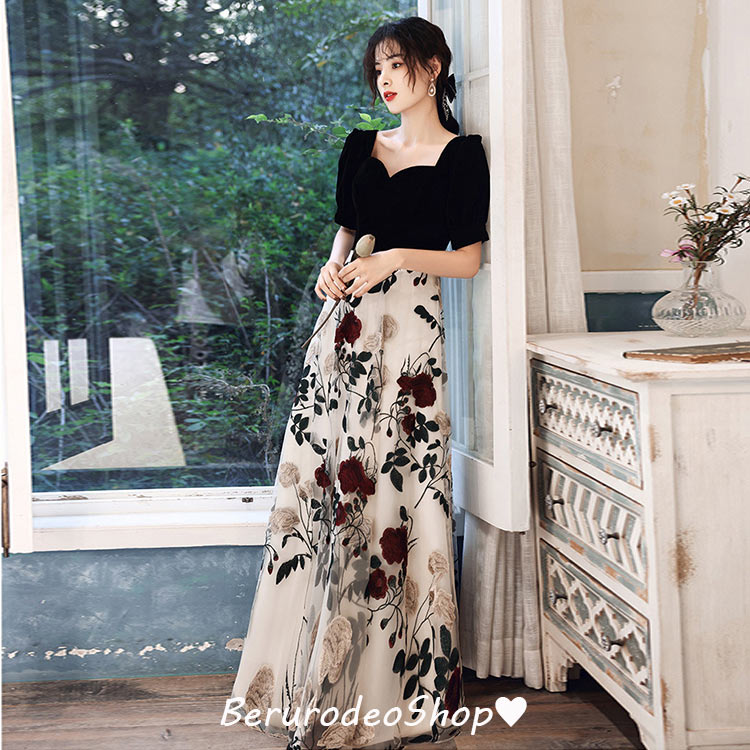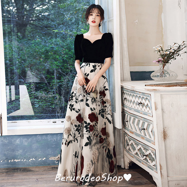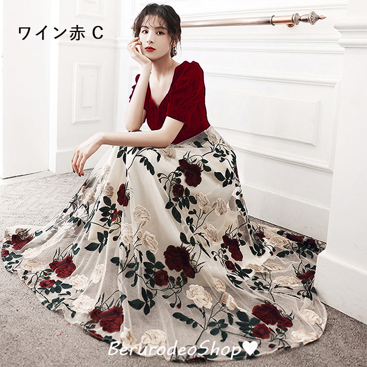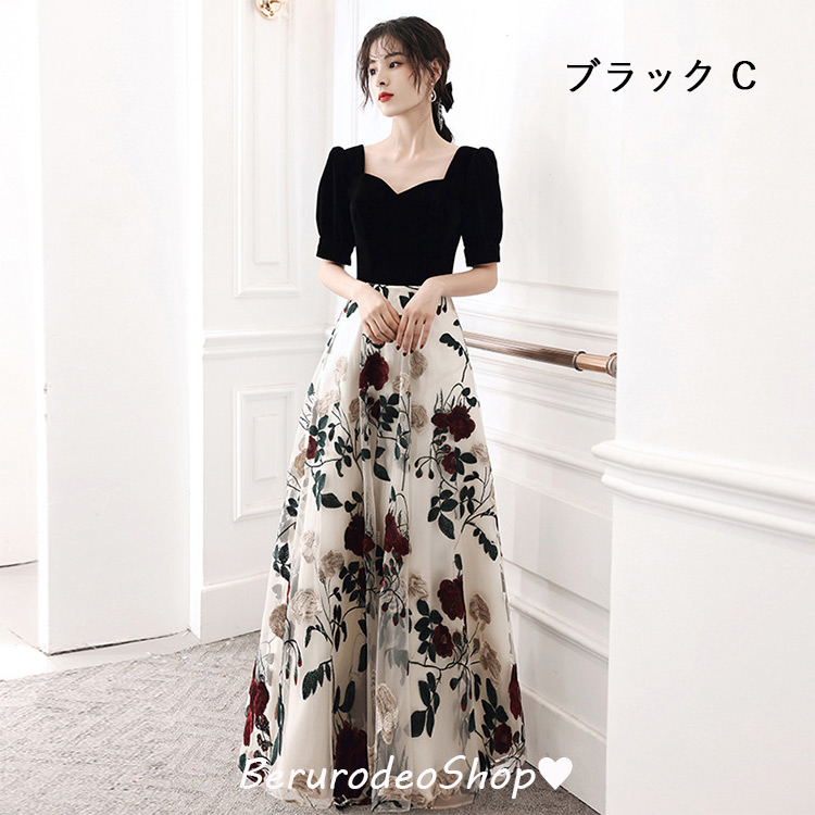 イブニングドレス 黒 ベロア ベルベッ ドレス 続々登場 ワイン赤B ブラックB ワイン赤C ブラックC ブラックD ブラックA XS S M L XL 2XL 3XL 4XL