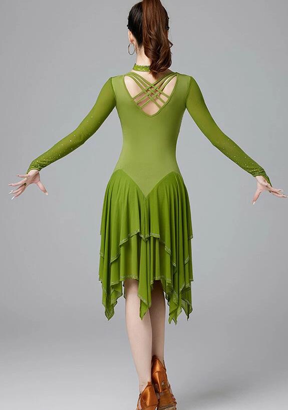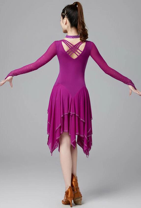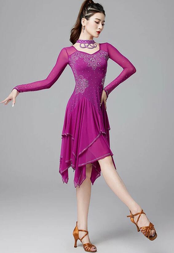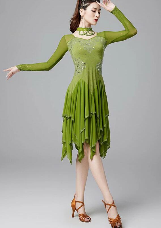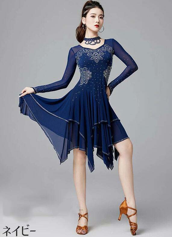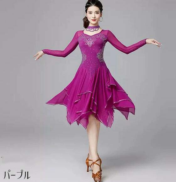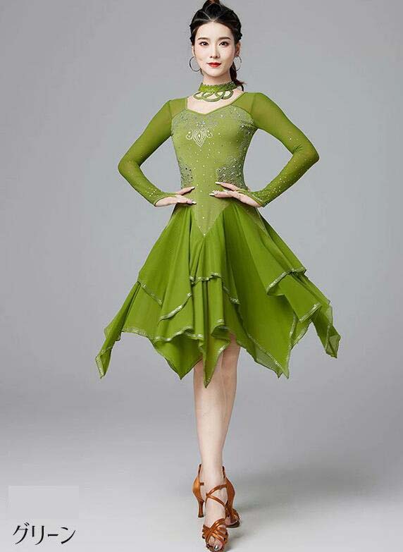 社交ダンス衣装 ラテンドレス チャチャ レディースファッション 新登場! グリーン ネイビー パープル M L LL 3L