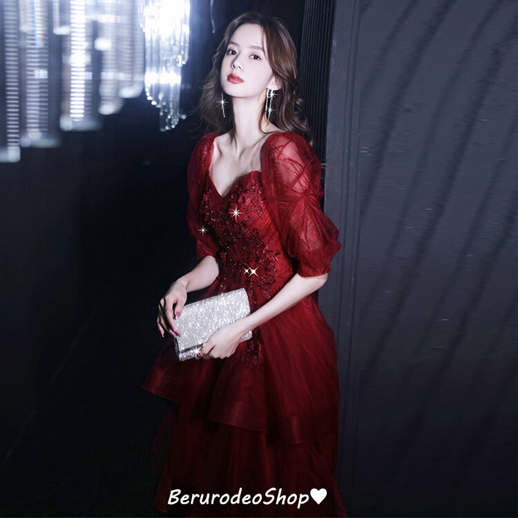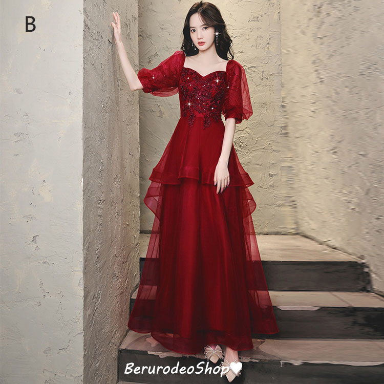 結婚式ドレス 二次会ドレス ワイン赤 ドレス 新登場! A B S M L XL XXL XXXL
