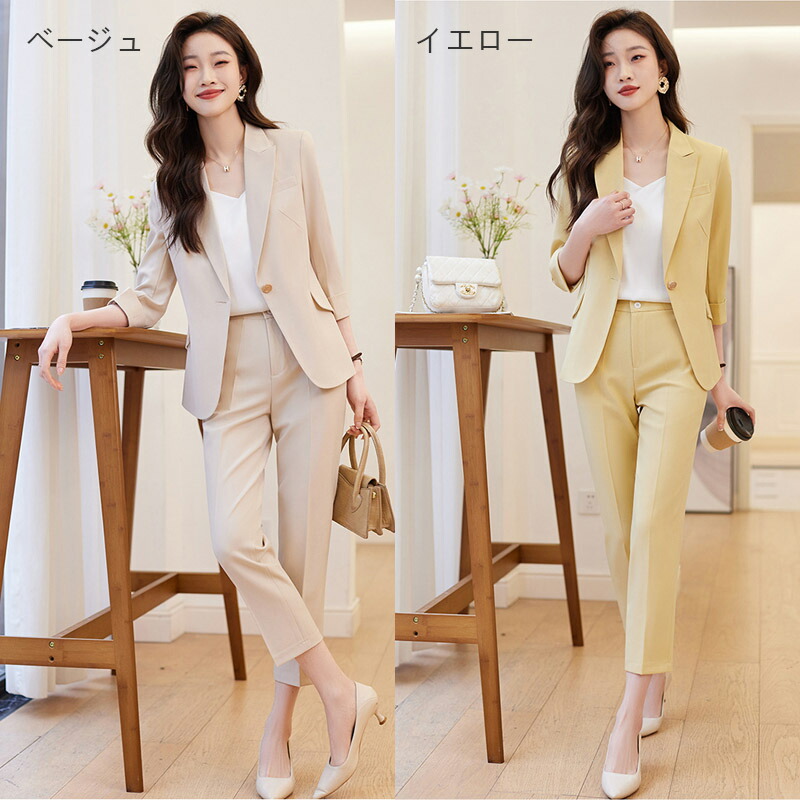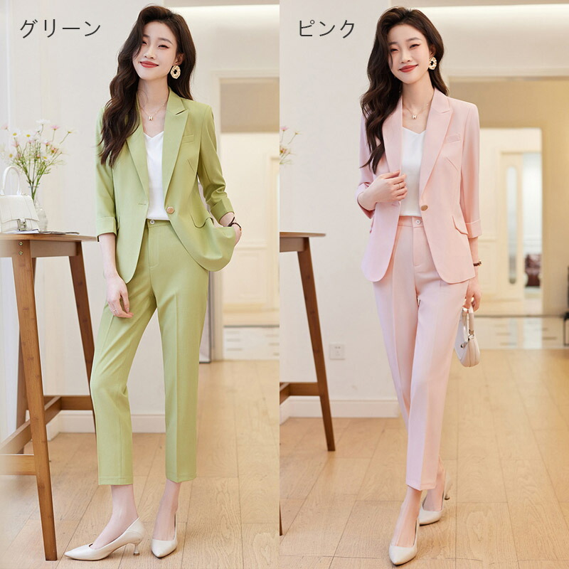 全4色 スーツ レディース パンツスー レディースファッション 人気 グリーン ピンク ベージュ イエロー S M L XL 2XL 3XL 4XL