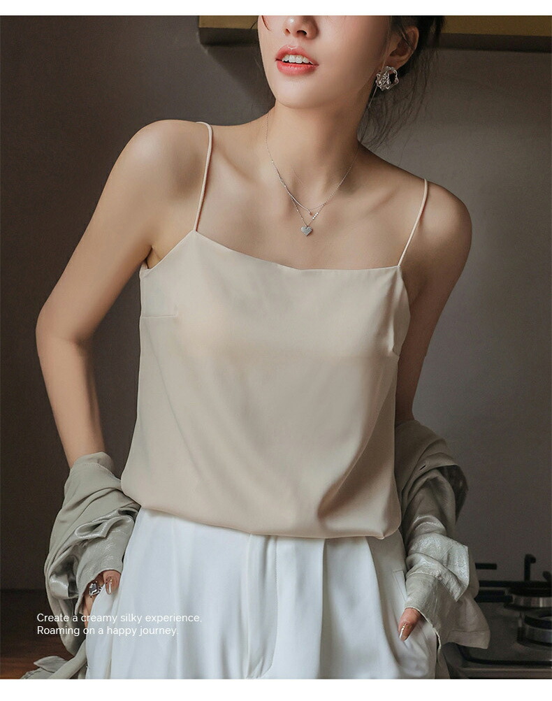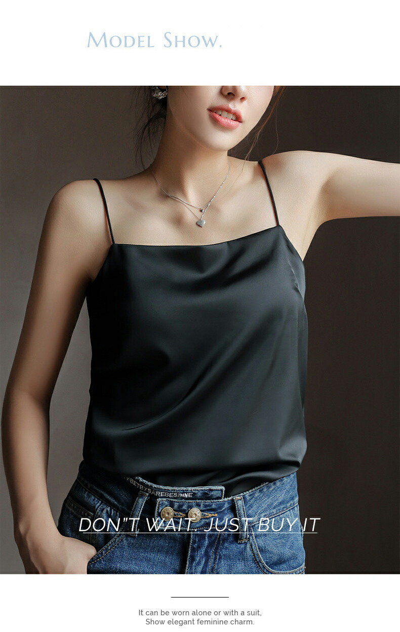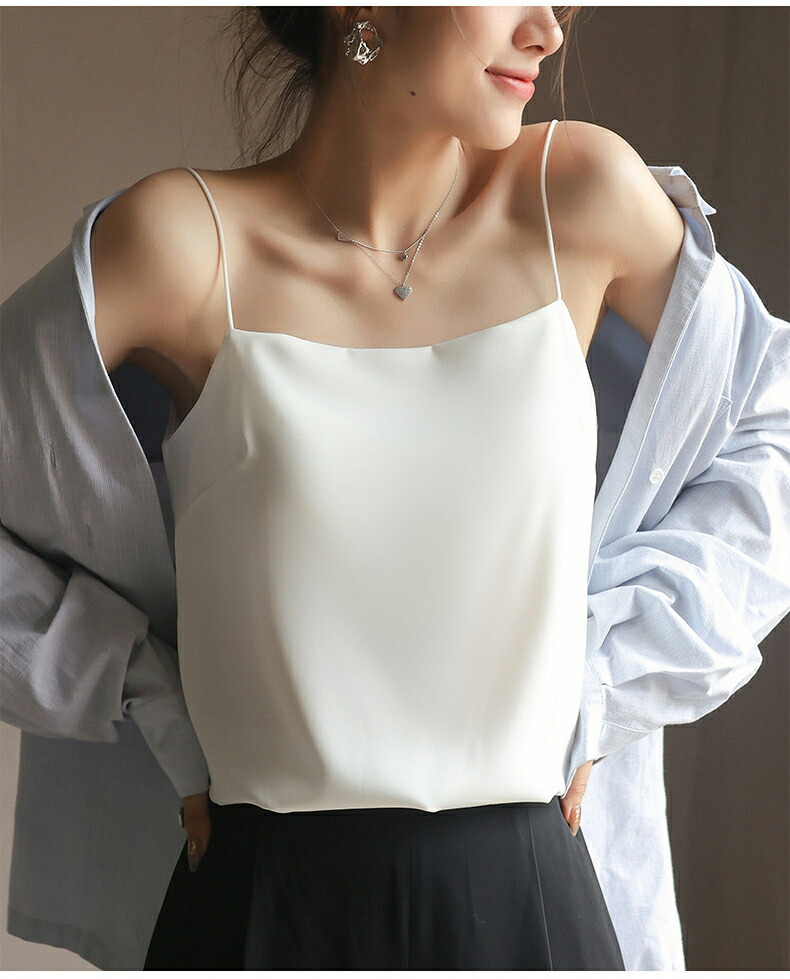 【締め付け感なく・細い肩ひもタイプ】伸縮性素材で締め付け感のないキャミソール仕様。ヘムラインは自然なドレープで、程よい着痩せ効果があります!伸縮性のある生地が体にフィットし、どんな体型の方でも、どんな運動をしている方でも、不快感を感じさせません。キャミソールの肩紐はよく伸び、肩を締め付けないので、着ていることを忘れるほどの心地よさです。日常的に快適に着用できるだけでなく、運動中もずれ落ちることなく、ぴったりとフィットする!