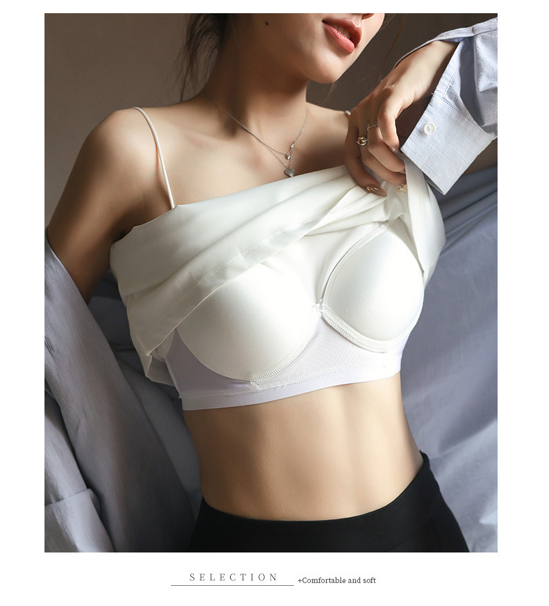 【蜂巣状通気カップ・カップ付きキャミソール】このキャミソールのカップは左右で固定されており、オリジナルの連結カップが絶妙な距離でつながっています。カップは体にフィットするように縫製されているので、締め付け感が少なく、美しいシルエットをさりげなく強調し、盛れるに見せると同時にスリムに見せてくれます。また、カップには蜂巣状の通気孔(穴)があり、吸湿性と通気性に優れ、汗をすぐに吸収してくれる理想的なカップ付きキャミソールです!