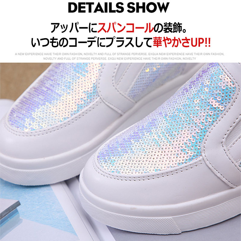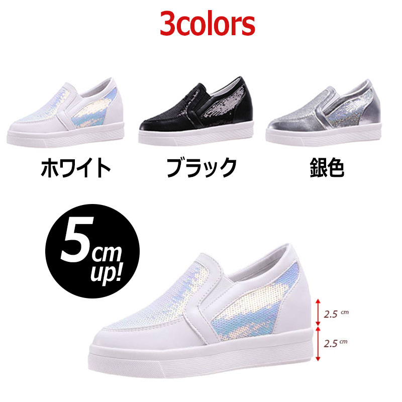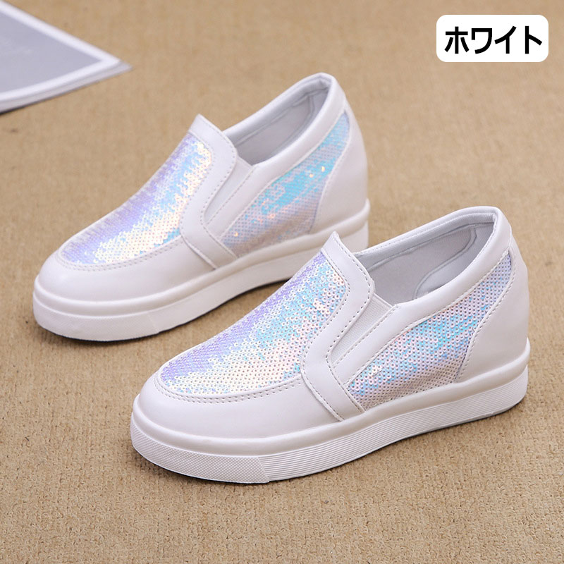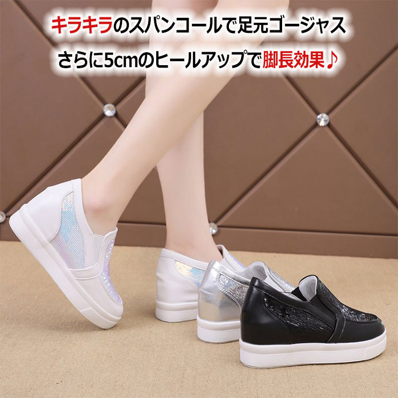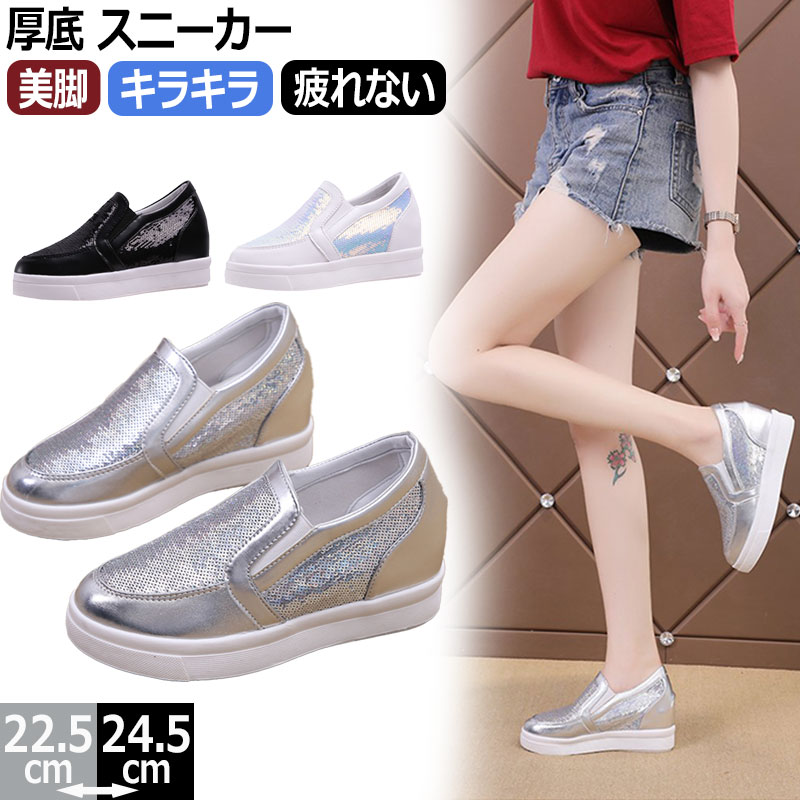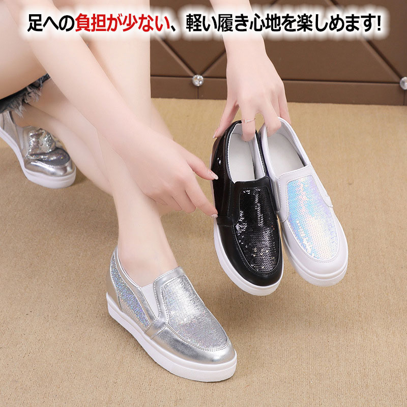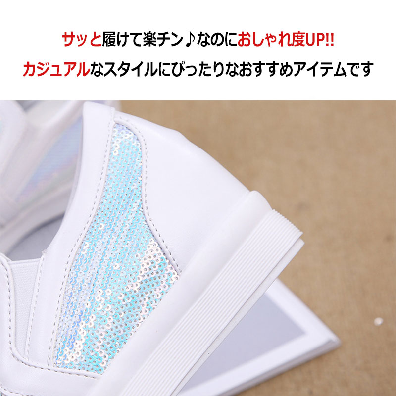 スニーカー スリッポン レディース キ 靴 特集 ブラック ホワイト 銀色 35(内寸22.5cm) 36(内寸23cm) 37(内寸23.5cm) 38(内寸24cm) 39(内寸24.5cm)