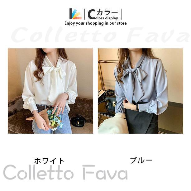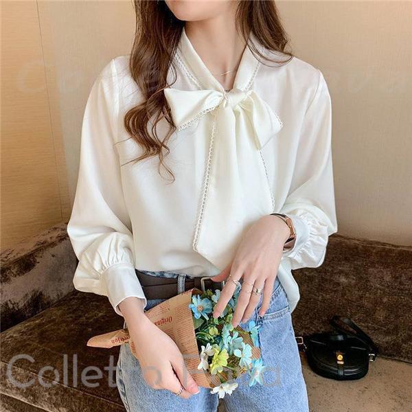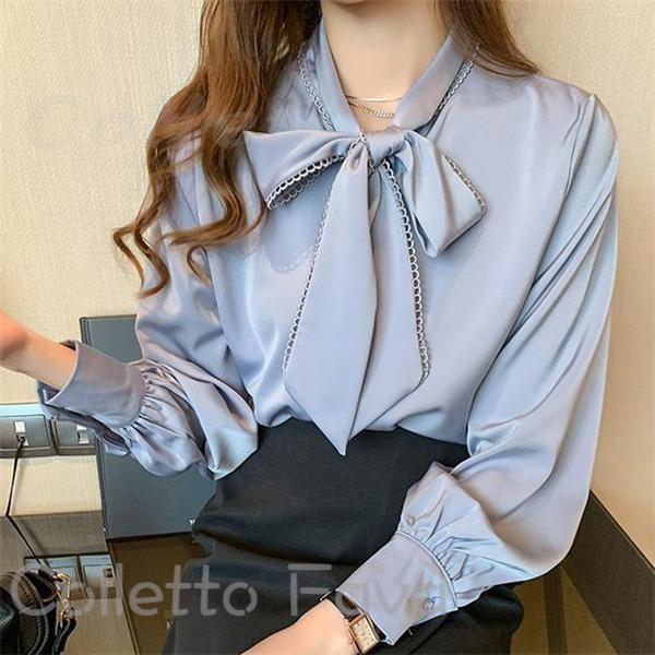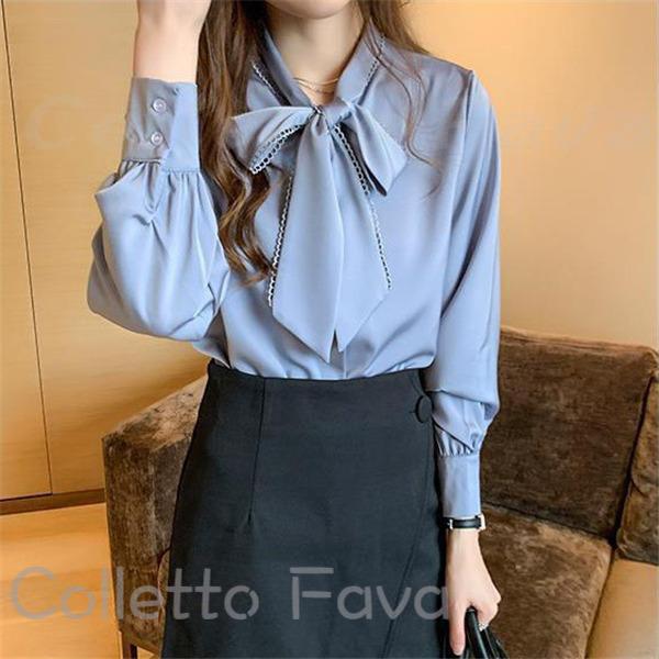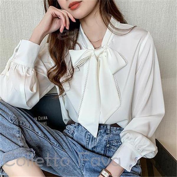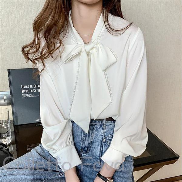 長袖シャツ ブラウス リボン付き 長袖 レディースファッション 続々登場 ホワイト ブルー S M L XL 2XL