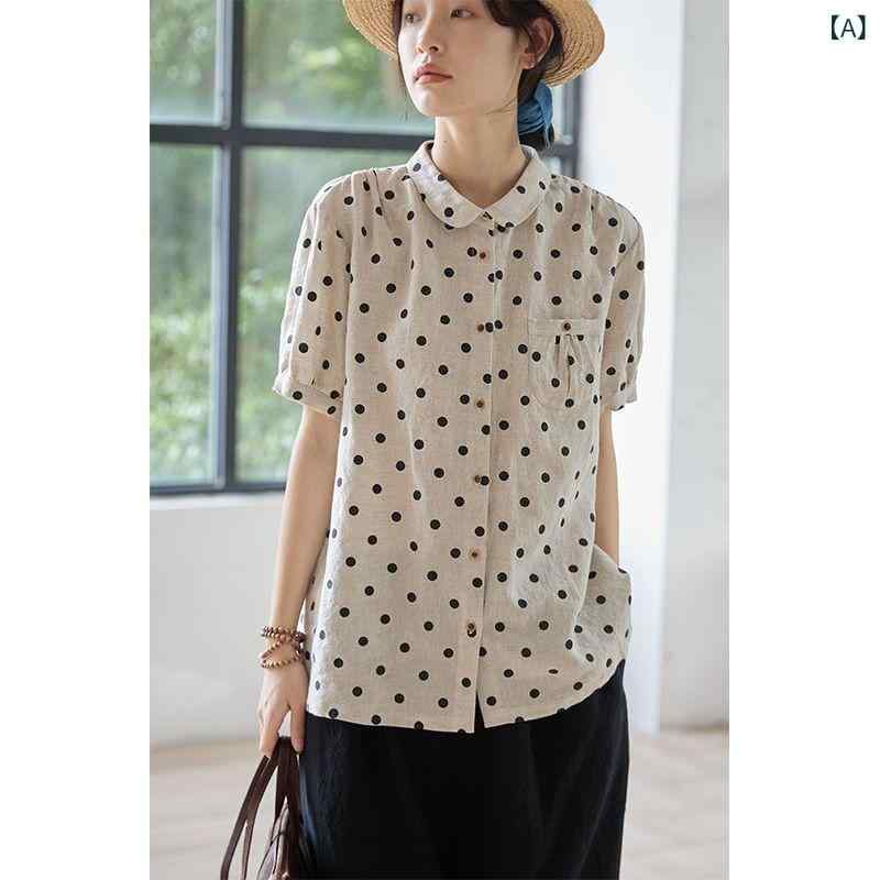 シャツ レディース 半袖 亜麻 リネン トップス シャツ ブラウス 新登場! S M L