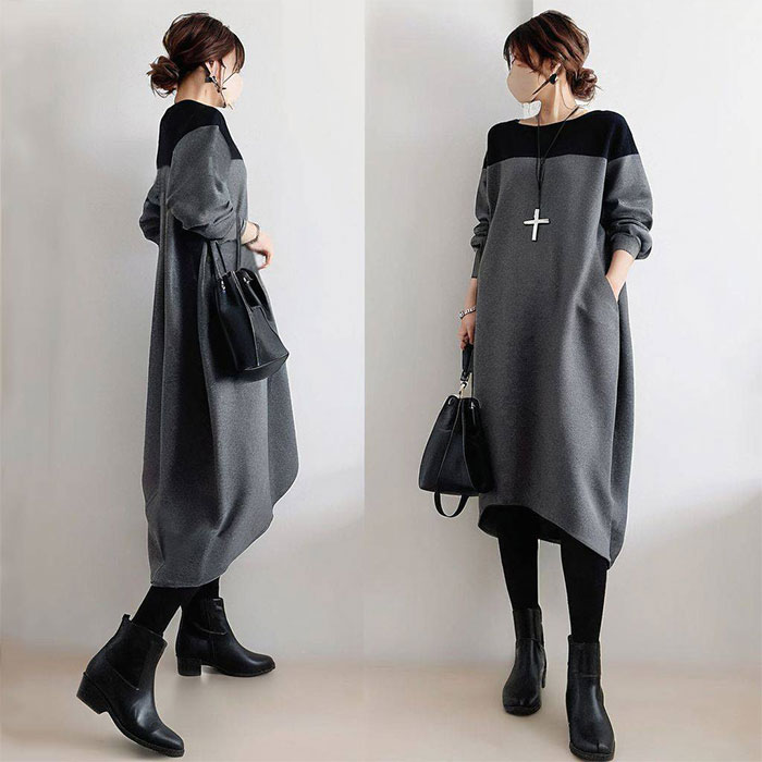 バルーンワンピース 春秋 きれいめ 大 ワンピース 新登場! グレー グリーン S M L