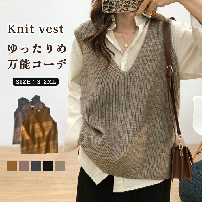 ニットベスト レディース 春 秋 プル トップス ベスト 早い者勝ち S M L XL 2XL ベージュ ブラック グレー イエロー コーヒー