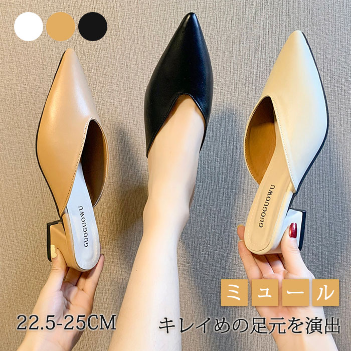 ミュール ミュールパンプス ポインテッ 靴 通販 22.5cm 23cm 23.5cm 24cm 24.5cm 25cm ブラック ブラウン ホワイト