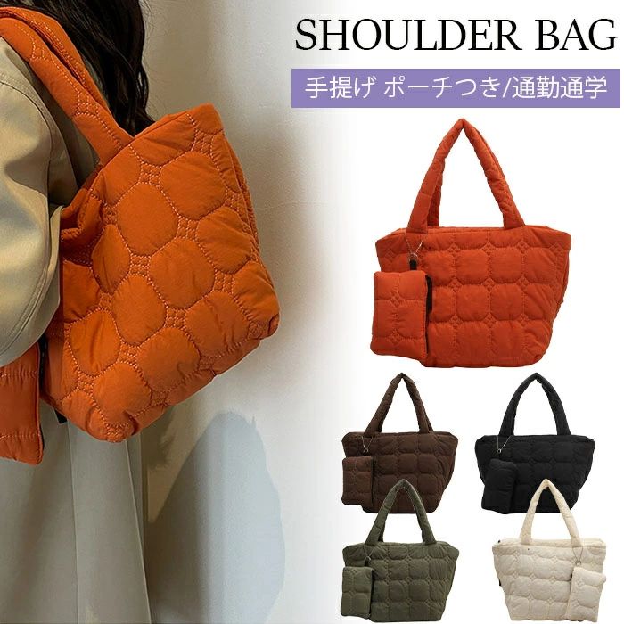 ナイロン キルト ポーチつき 大容量 バッグ 小物 ブランド雑貨 早い者勝ち ブラック ブラウン オレンジ グリーン ベージュ
