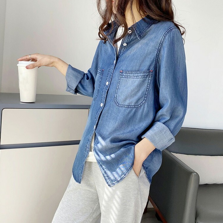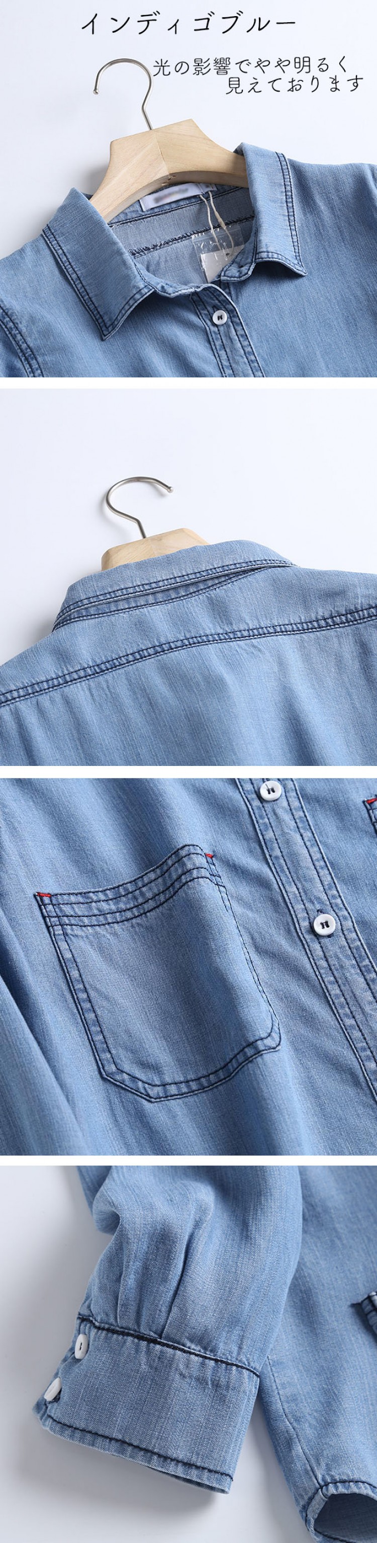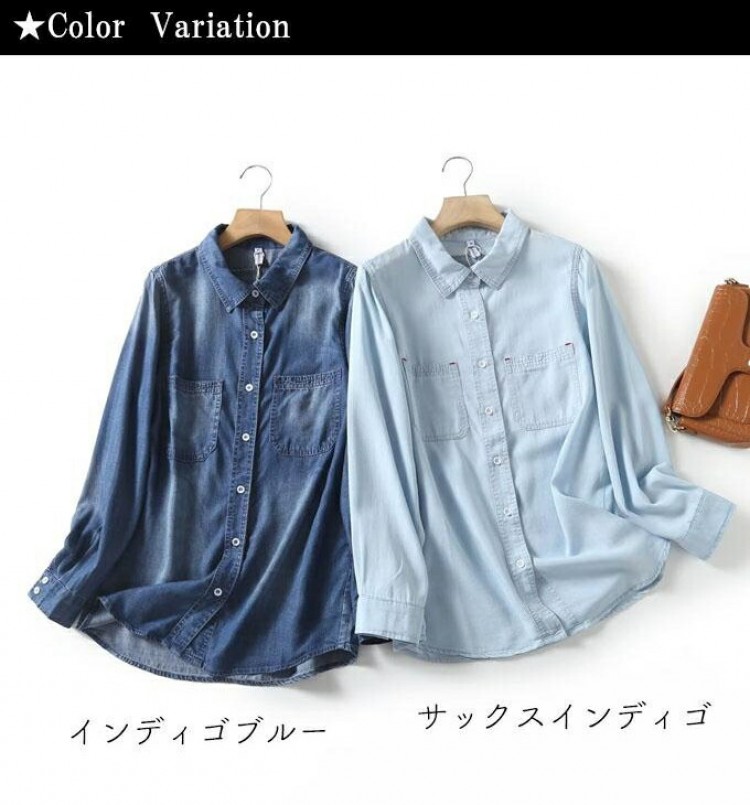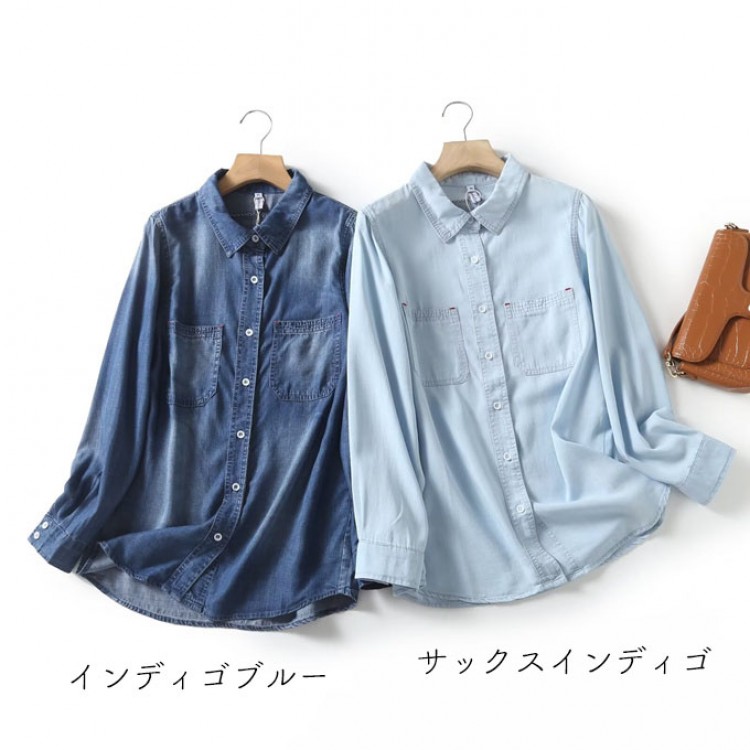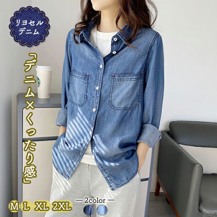 リヨセル デニムシャツ レディース 春 レディースファッション 超目玉商品 Mサイズ Lサイズ XLサイズ 2XLサイズ サックスインディゴ インディゴブルー