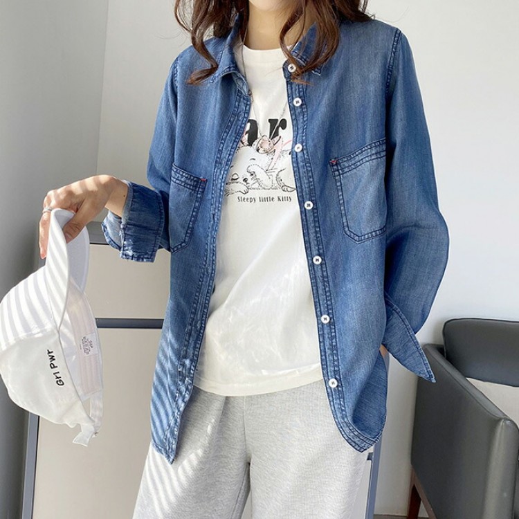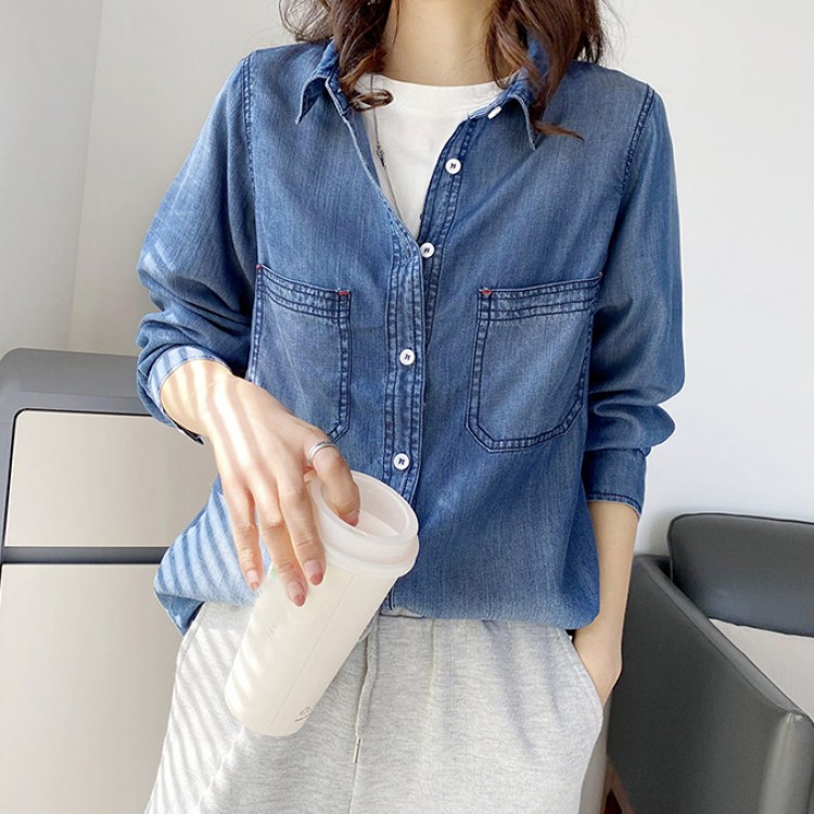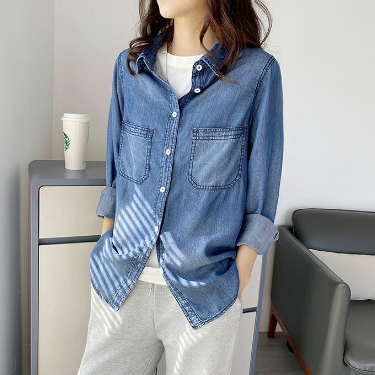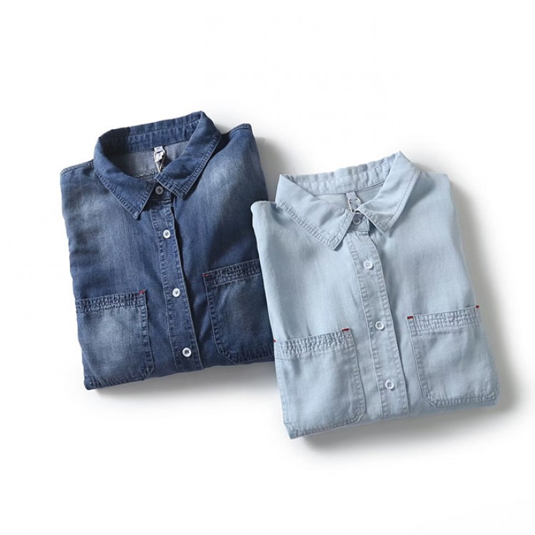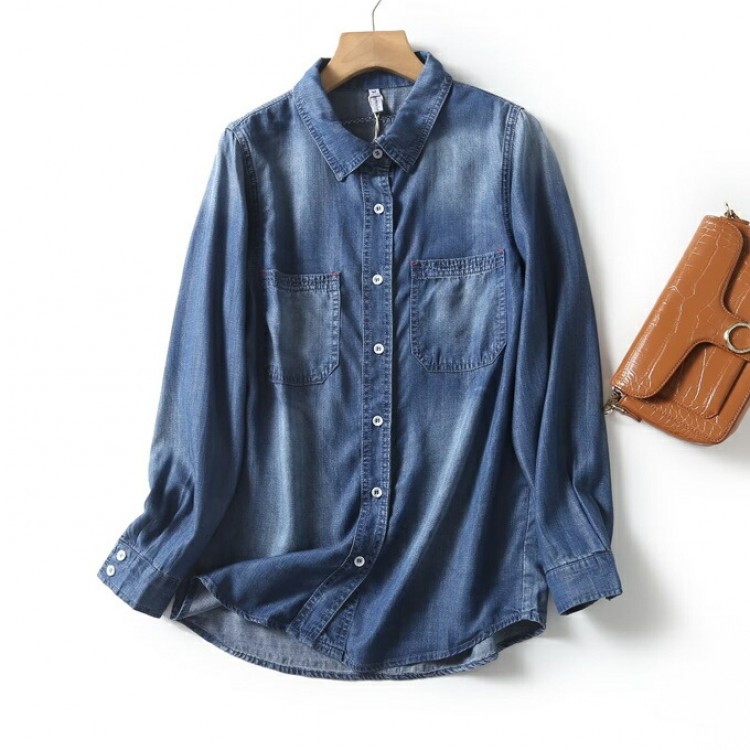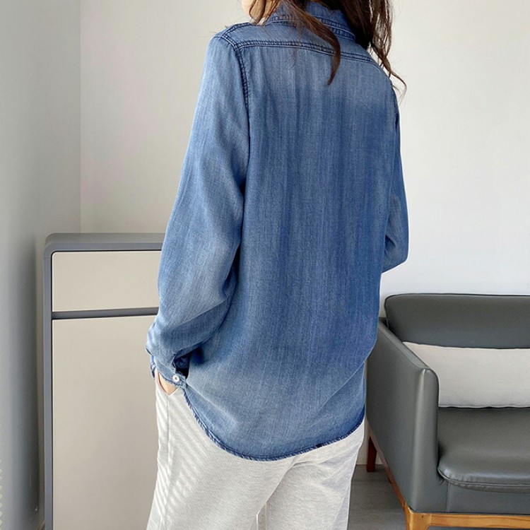 リヨセル デニムシャツ レディース 春 レディースファッション 超目玉商品 Mサイズ Lサイズ XLサイズ 2XLサイズ サックスインディゴ インディゴブルー