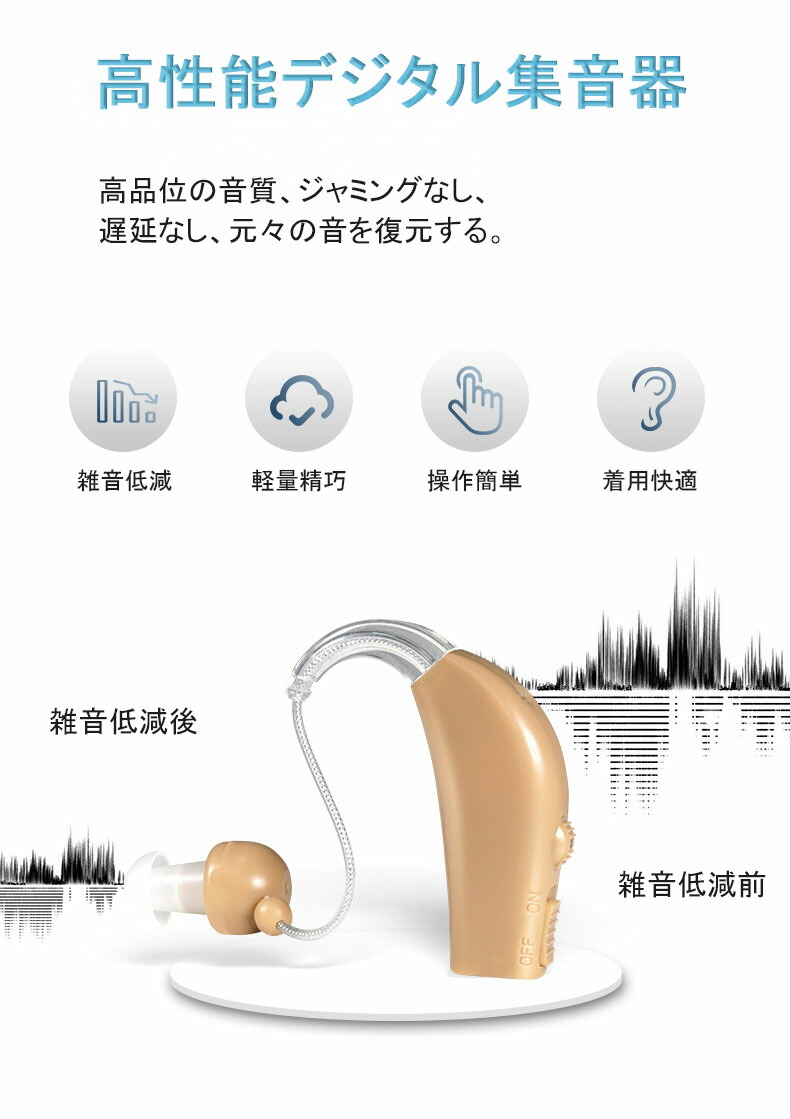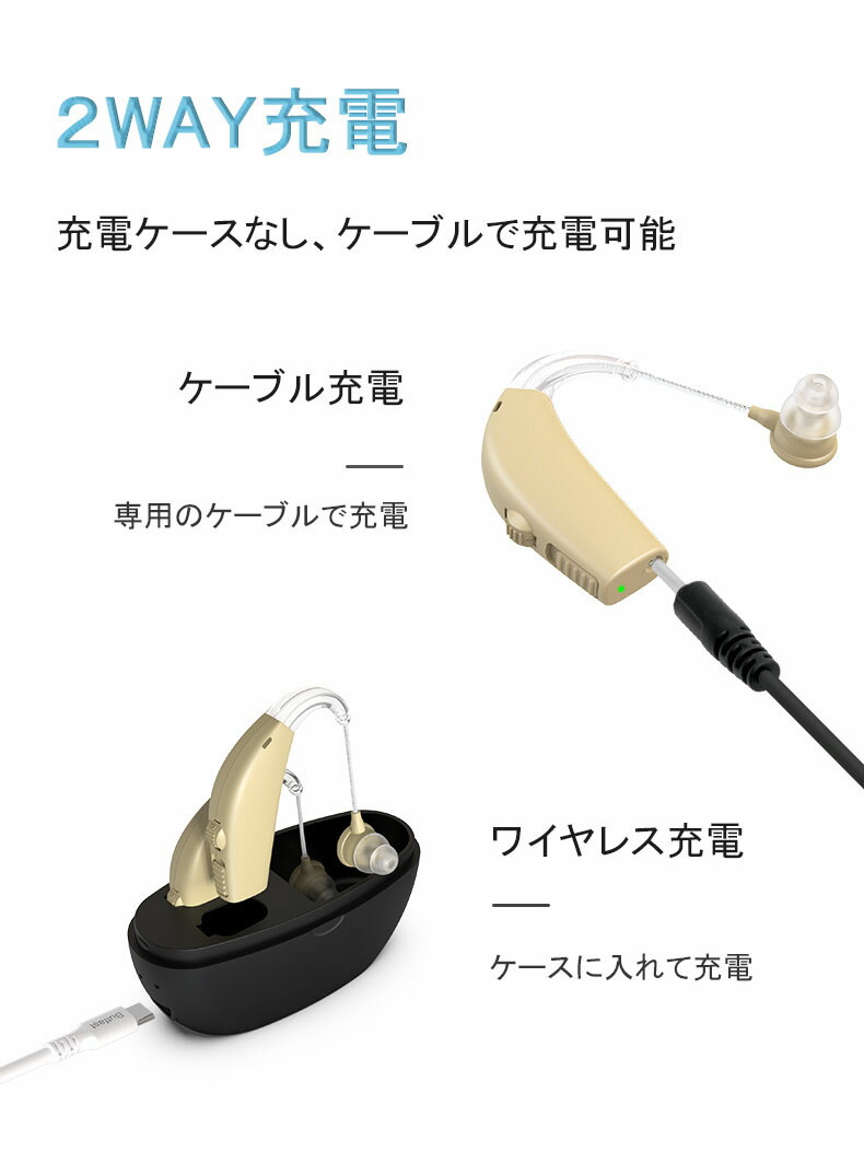 集音器 充電式 耳掛け式 デジタル 軽 肌色(ホワイトケース) 肌色(ブラックケース) ブルー(ホワイトケース) ブルー(ブラックケース)