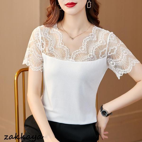 tシャツ レディース 半袖 レース 花 トップス その他 早い者勝ち ホワイト ブラック L XL 2XL