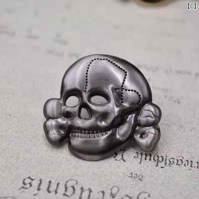 かっこいい カジュアル キーホルダーアクセサリーメタル ドイツの 頭蓋 骨の ブローチ バッジ プロイセン 戦車 兵 鉄 十字 アクセサリー キャップ スパイク 勲章
