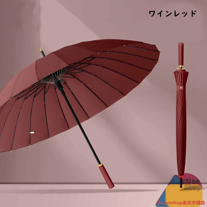 屈強な24本骨 長傘 傘 メンズ レデ 傘 男女兼用雨傘 新登場! オフホワイト グリーン ピンク グレー ワインレッド ダークグリーン ディープブルー ブラック