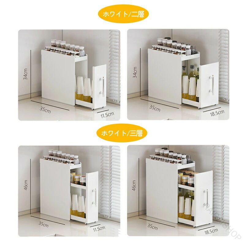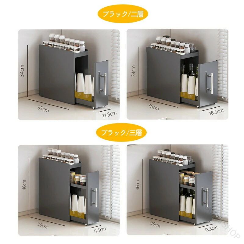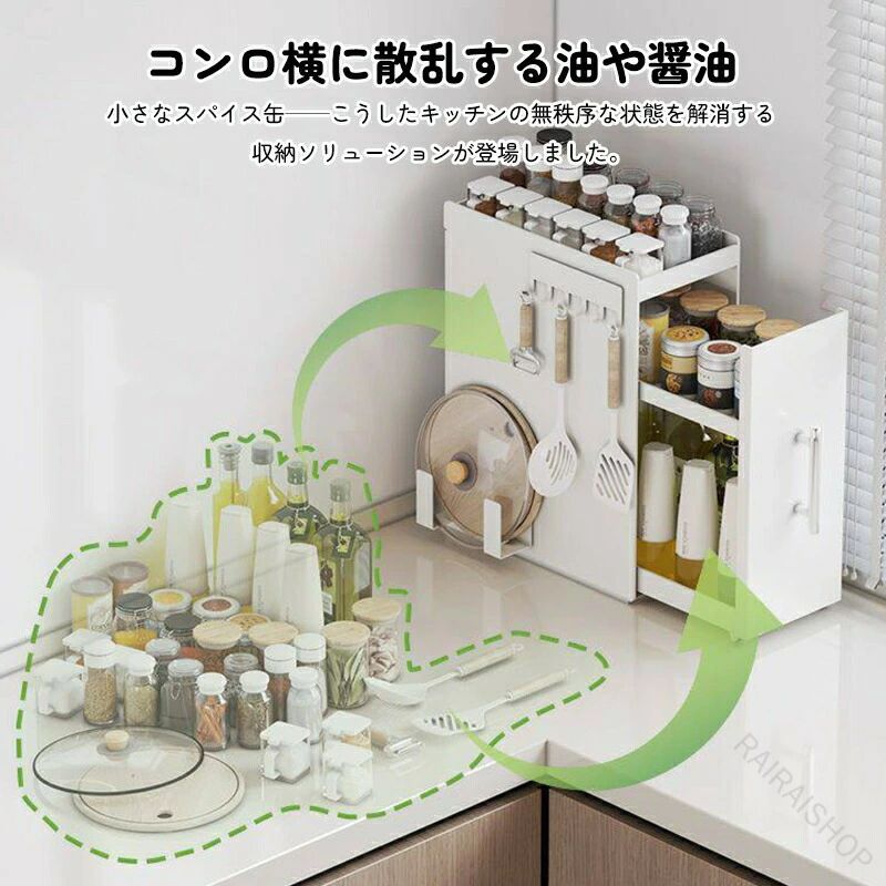 調味料ラック 2段 3段 引き出し付き キッチン用品 食器 調理器具 新作 ホワイト ブラック 二層 三層