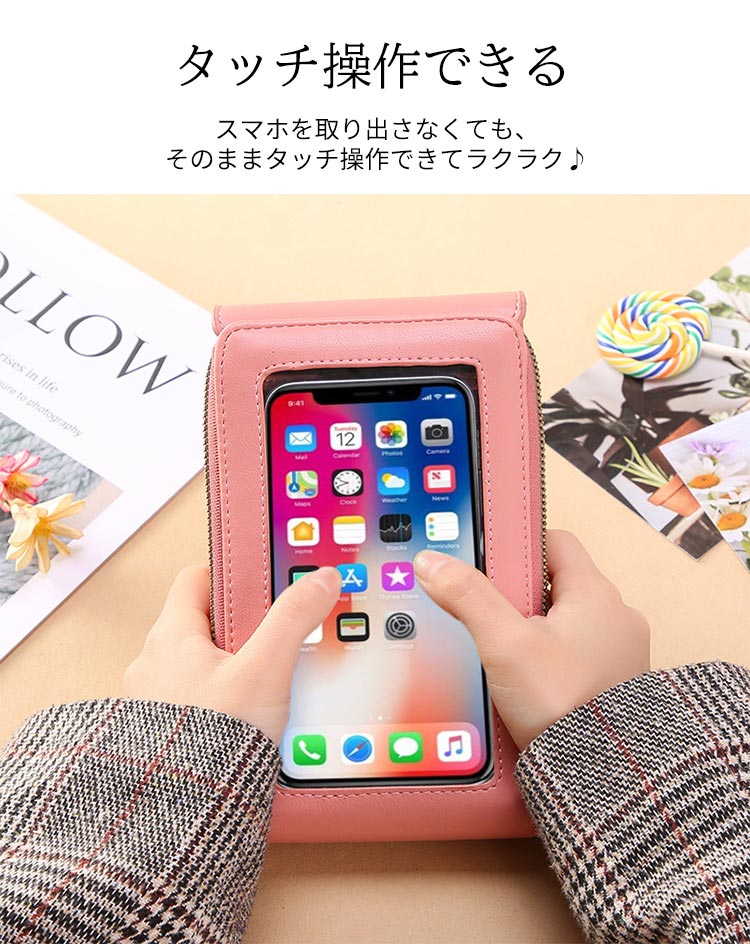スマホポーチ スマホショルダー レディ バッグ レディースバッグ アクセサリーポーチ 人気 イエロー ブラック ピンク グレー ブラウン