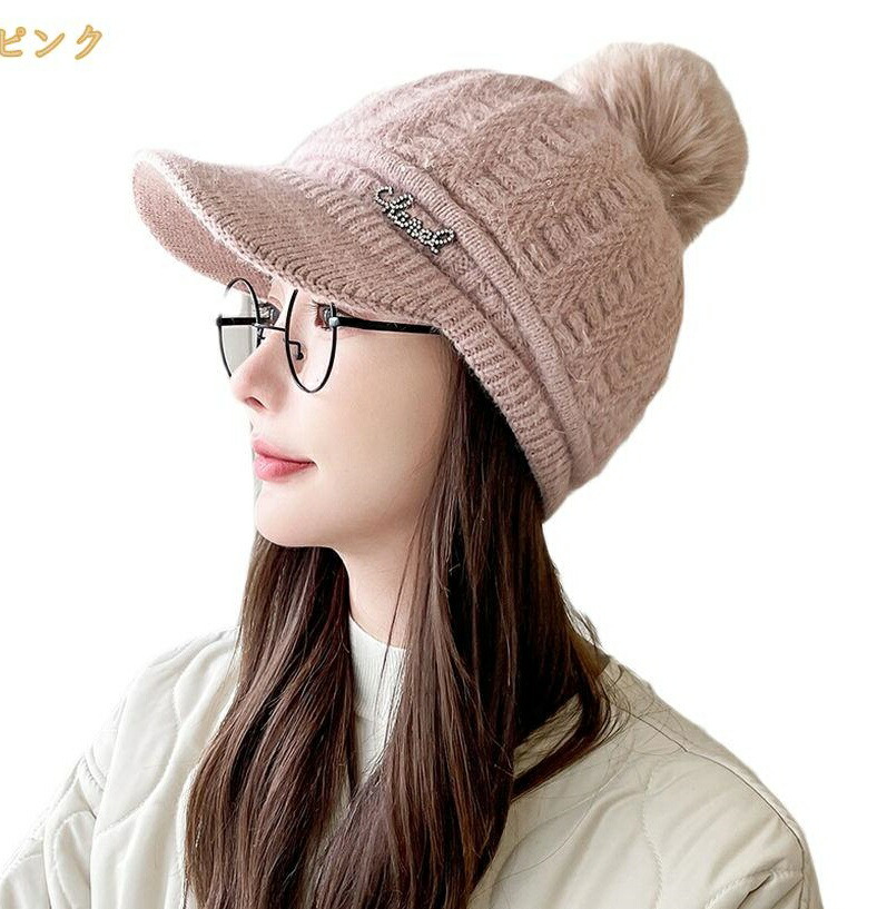 おばあちゃん 誕生日 帽子 つば付きニット帽 レディース ウサギ ニット帽 大人 スヌード 白 ニット 穴あき キャスケット 婦人 ピンク 可愛いニット帽 畑用帽子 ボア 手袋 お年寄り ニット帽