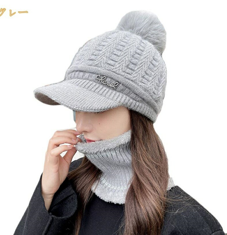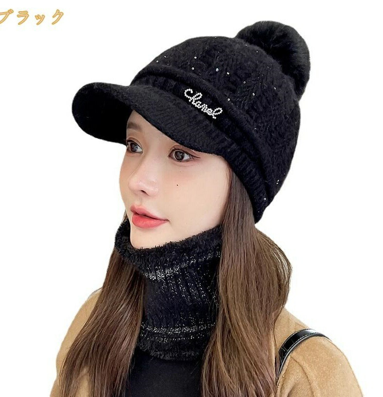 秋冬 レディース ニット帽 帽子 スヌード ニットキャップ ネックウォーマーセット 暖かい 裏ボア 裏起毛 暖かい ハット 秋用 冬用 防寒対策 防風 防寒 ポンポン 2点セット 3点セット つば付き 小顔効果 大人 可愛い スノーボード