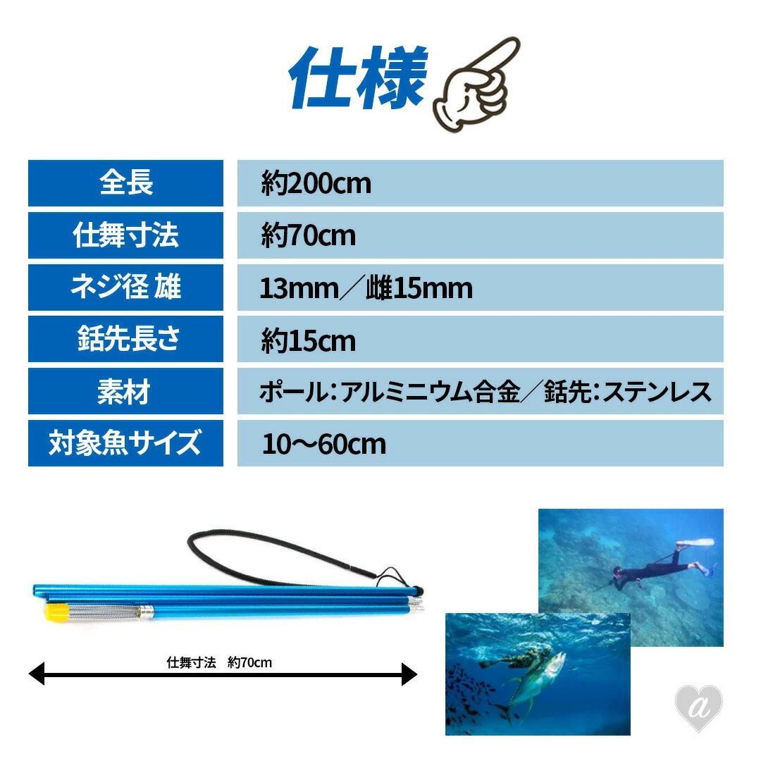 シュノーケリング ポールスピア 漁 突き 魚 モリ もり スピアフィッシング ダイビング 水中銃 手銛 スキューバ 魚突き 2 素潜り