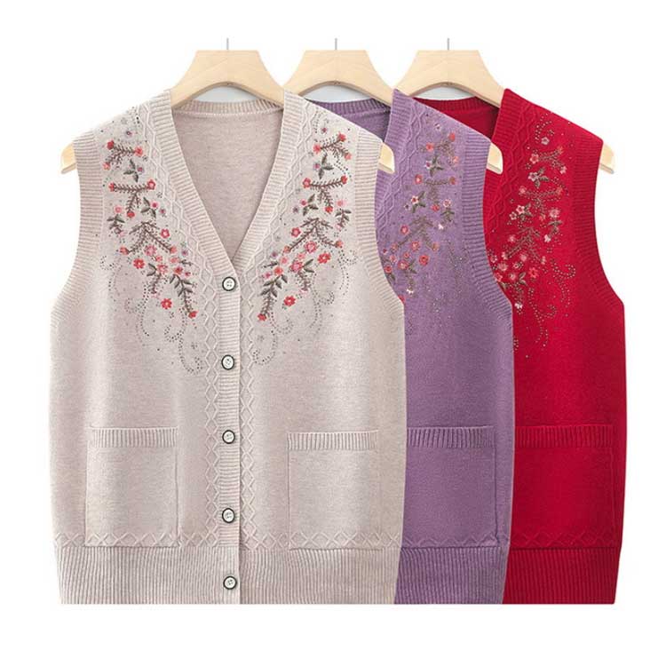 シニア 花柄刺繍ベスト 春夏 婦人服 レディースファッション 豊富な品揃え パープル ベージュ レッド XL 2XL 3XL 4XL