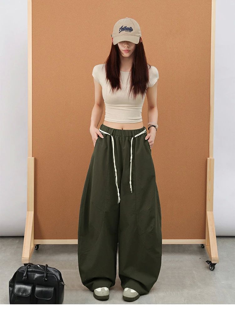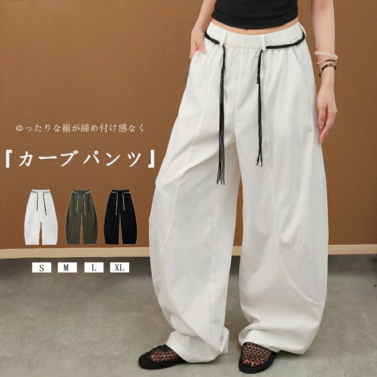 カーブパンツ ワイド パンツ レディー レディースファッション 続々登場 ホワイト ブラック グリーン S M L XL