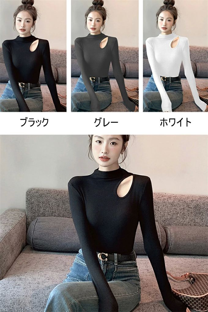 新作 秋服 春服 OL 通勤 カジュア トップス Tシャツ カットソー 通販 ホワイト ブラック グレー S M L XL 2XL