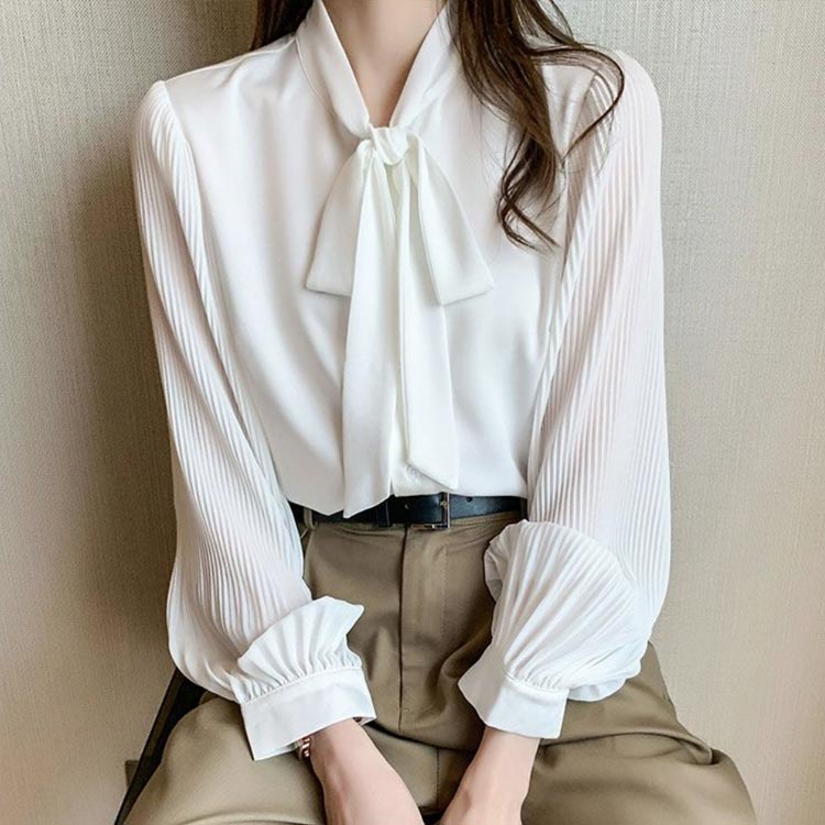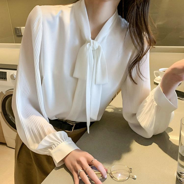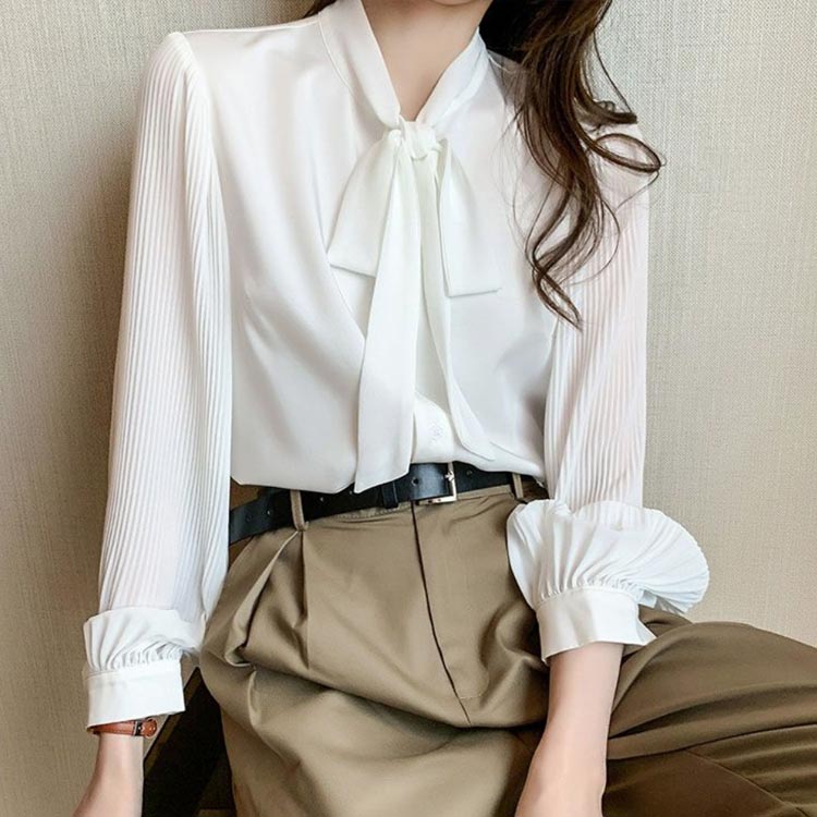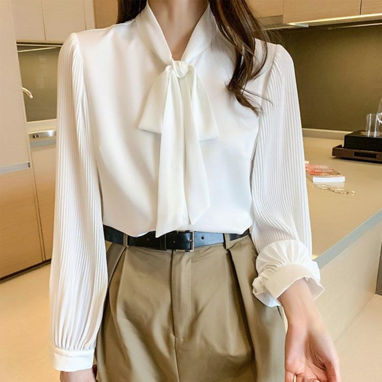 シアースリーブ ドッキングシャツ ボウタイシャツブラウス
