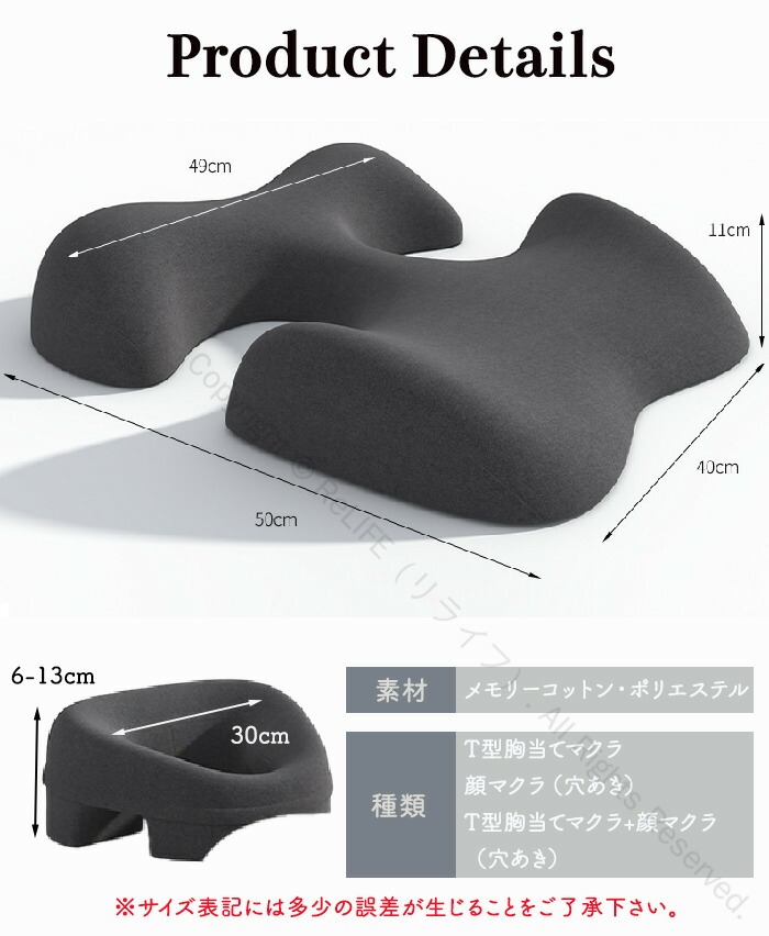 顔当て枕 胸当て枕 顔まくら 顔マクラ インテリア 寝具 収納 通販 グレー チャコール T型胸当て枕 顔枕(穴あき) T型胸当て枕+顔枕(穴あき)