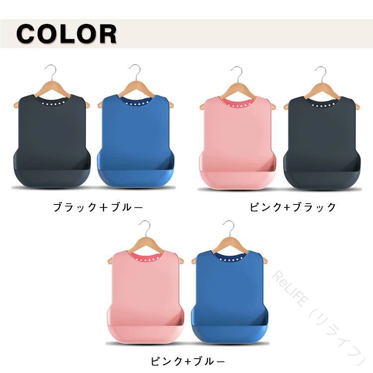 介護 大人用 エプロン 老人 介護施設 ブラック+ブルー ピンク+ブラック ピンク+ブルー