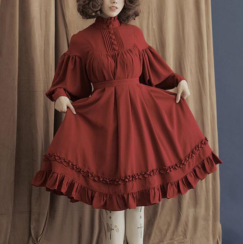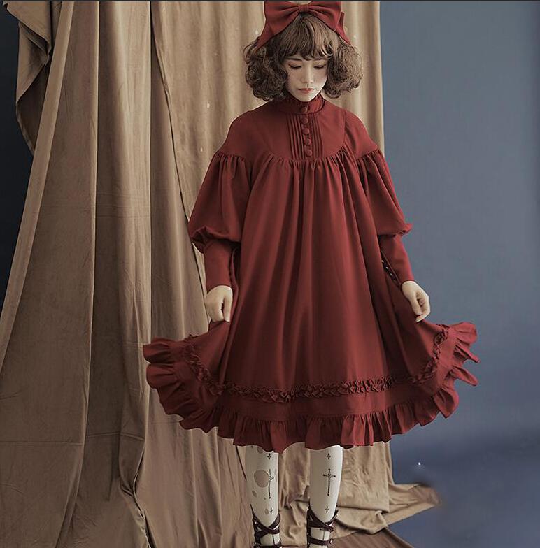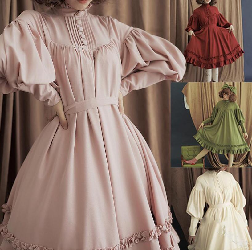 日系ワンピース 学院風洋服5色メイドド ワンピース 超目玉商品 ピンク ワイン グリーン ブラック オフホワイト S M L XL XXL 3XL 4XL 5XL