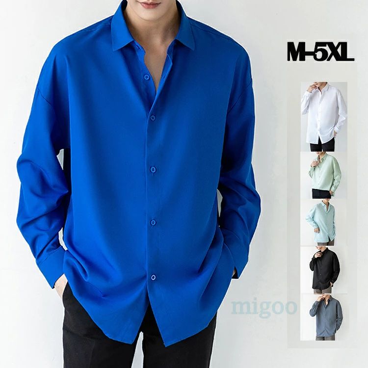 ビッグシャツ メンズ 長袖シャツ 白シ トップス カジュアルシャツ 早い者勝ち 黒 ダークグレー ライトブルー ロイヤルブルー グリーン 白 M L XL 2XL 3XL 4XL
