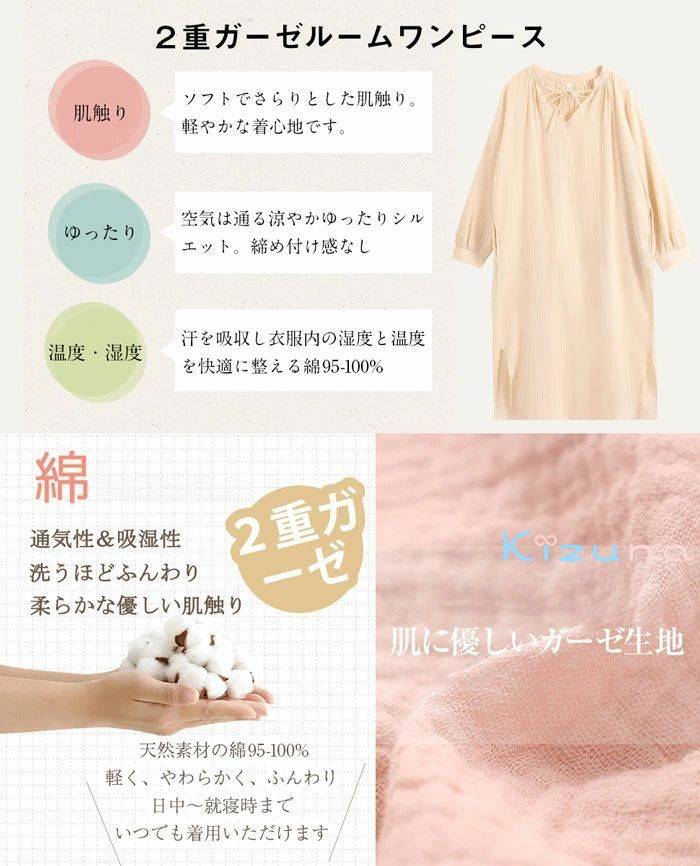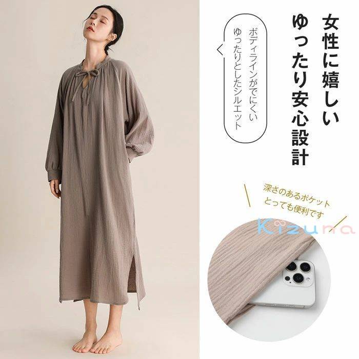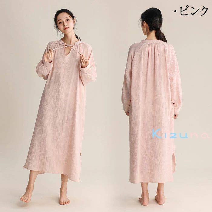 ワンピース ルームウェア 薄手 長袖 レディースファッション 超目玉商品 ブラウン ピンク ベージュ M L