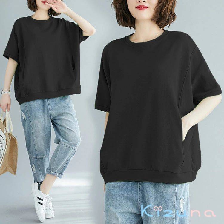 体型カバー 5分丈 tシャツ スウェッ トップス シャツ ブラウス 続々登場 ブラック グリーン イエロー ホワイト ブルー バラレッド M L XL 2XL 3XL 4XL
