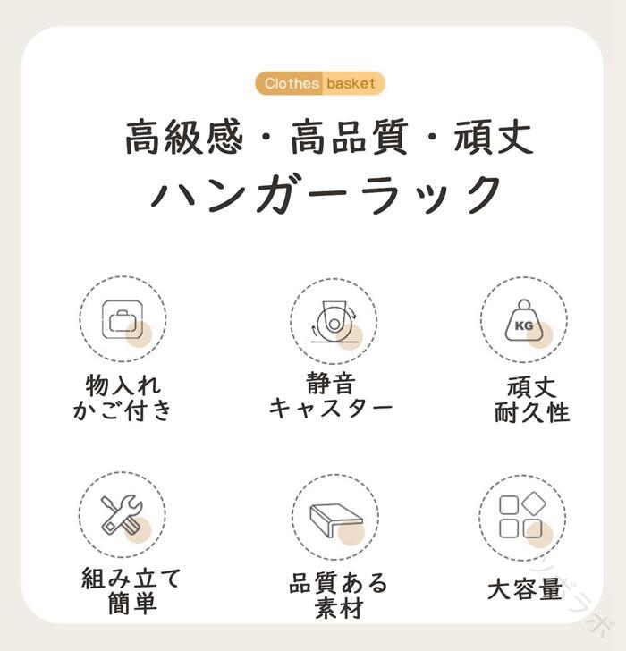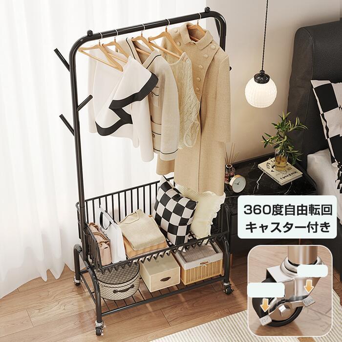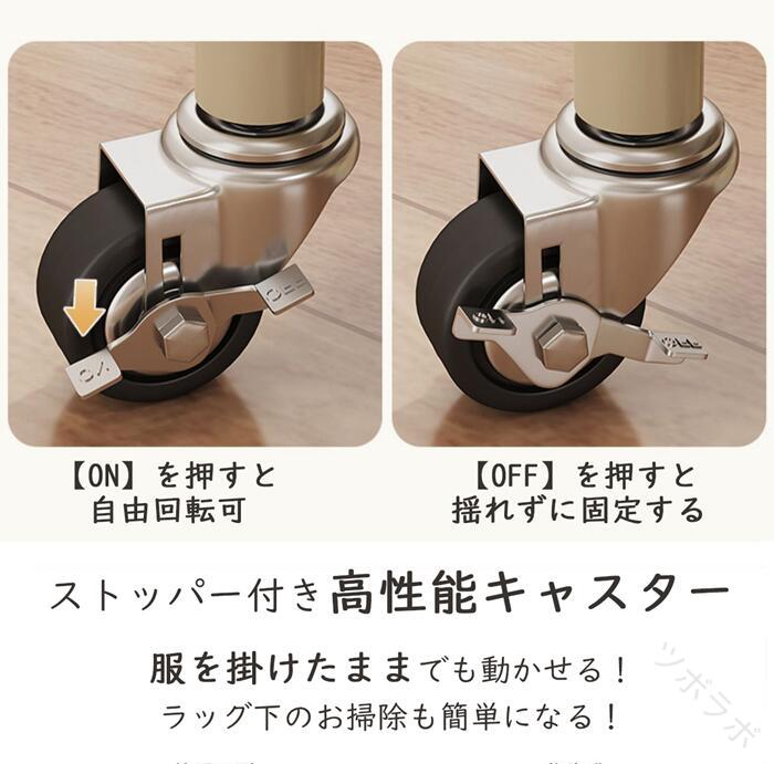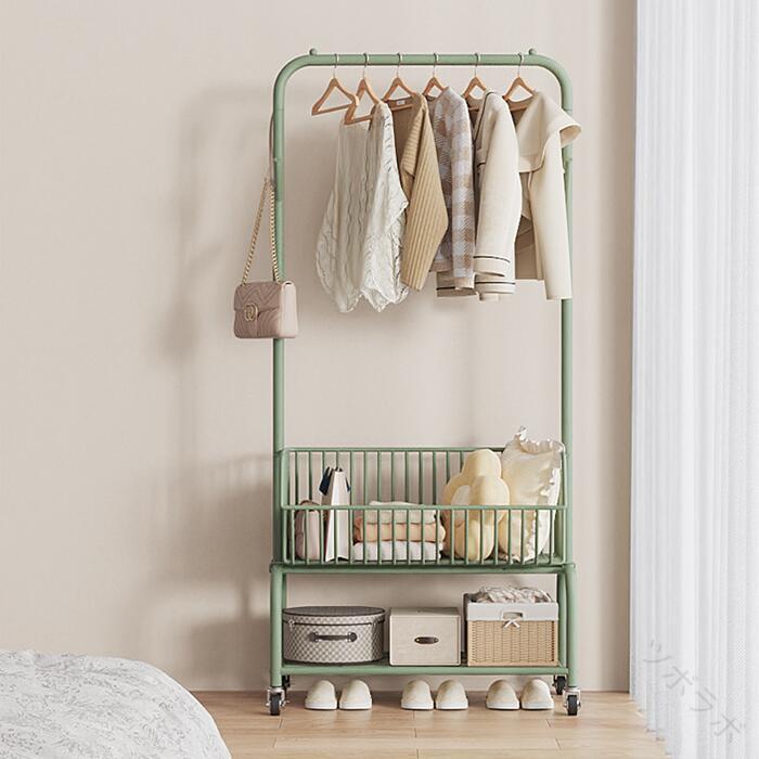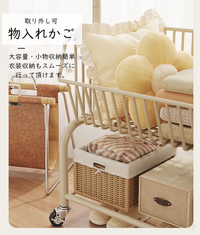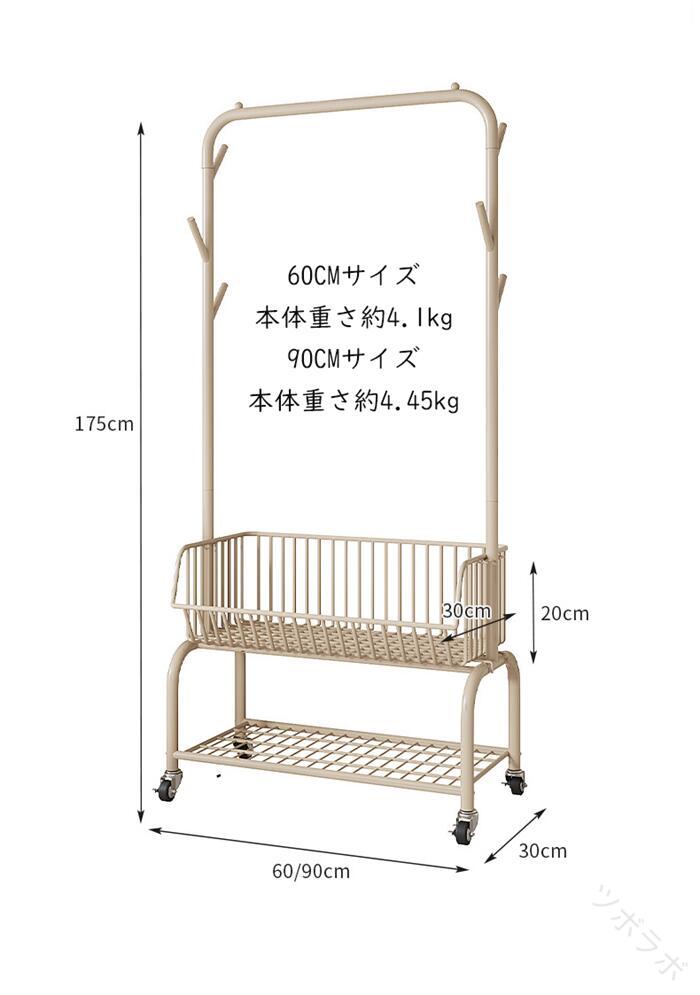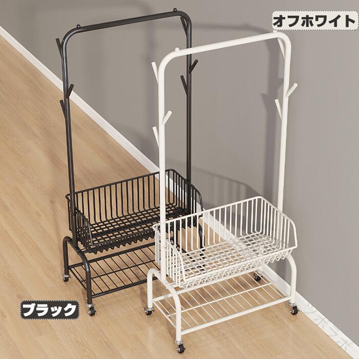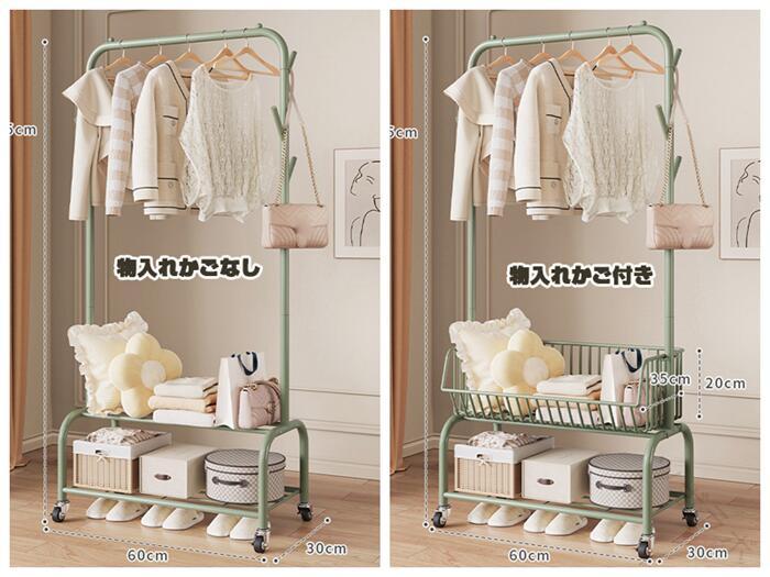 ハンガーフック 物入れかご付き キャス グリーン オフホワイト オフホワイト(かごなし) グリーン(かごなし) M(幅60CM) L(幅90CM)