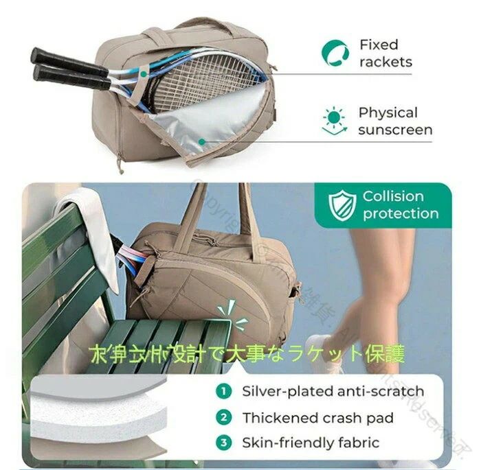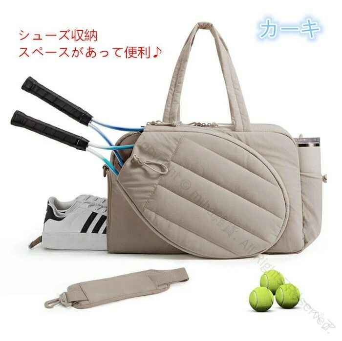 靴収納+濡れもの収納付き大きいサイズラケットバッグテニスバッグバドミントンバッグスポーツトートバック男女兼用軽量ジムバッグ多機能型旅行用持ち運び簡単キルティング大容量バッグ耐久性抜群設計