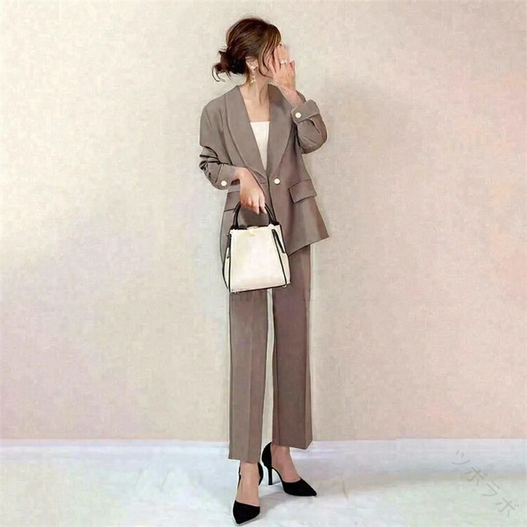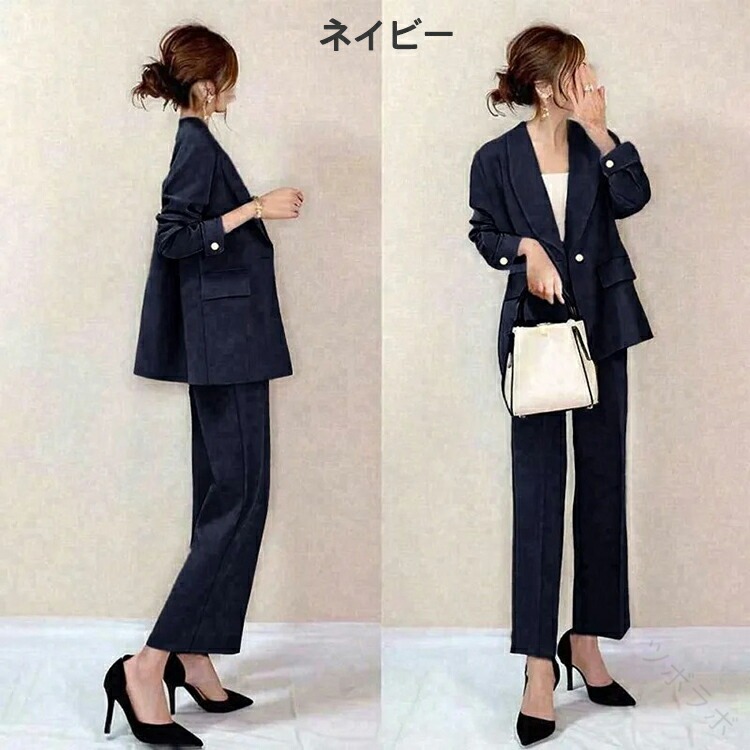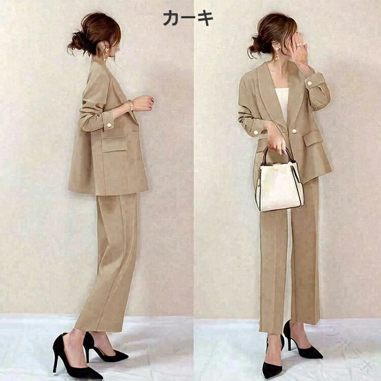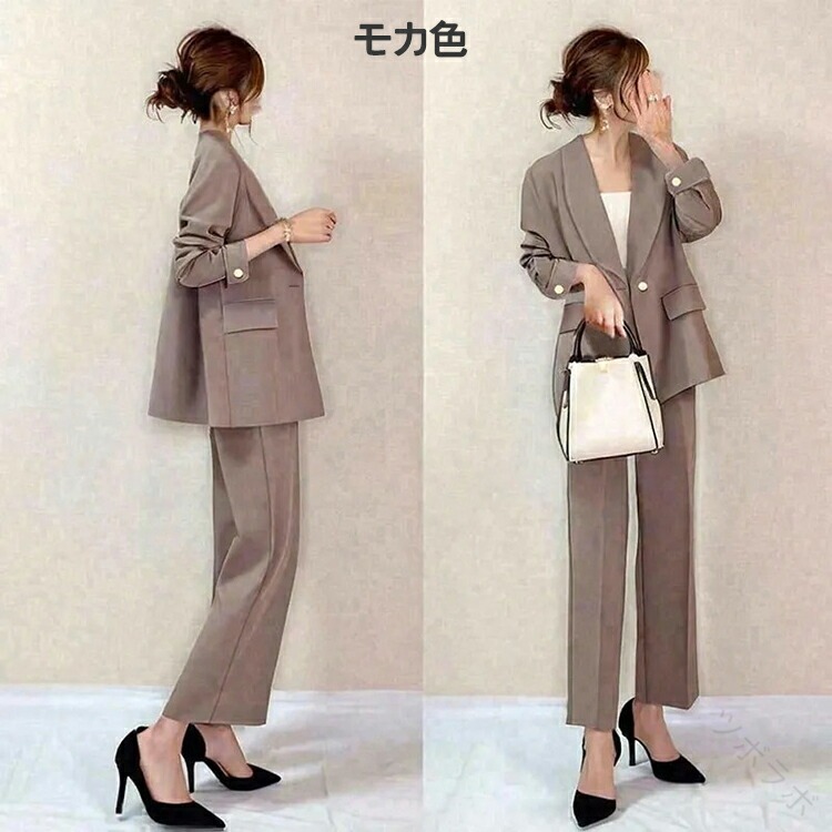 卒業式 スーツ 母親 レディース セッ スーツ セットアップ パンツスーツ 人気 ネイビー2点 グレー2点 モカ色2点 カーキ2点 S M L