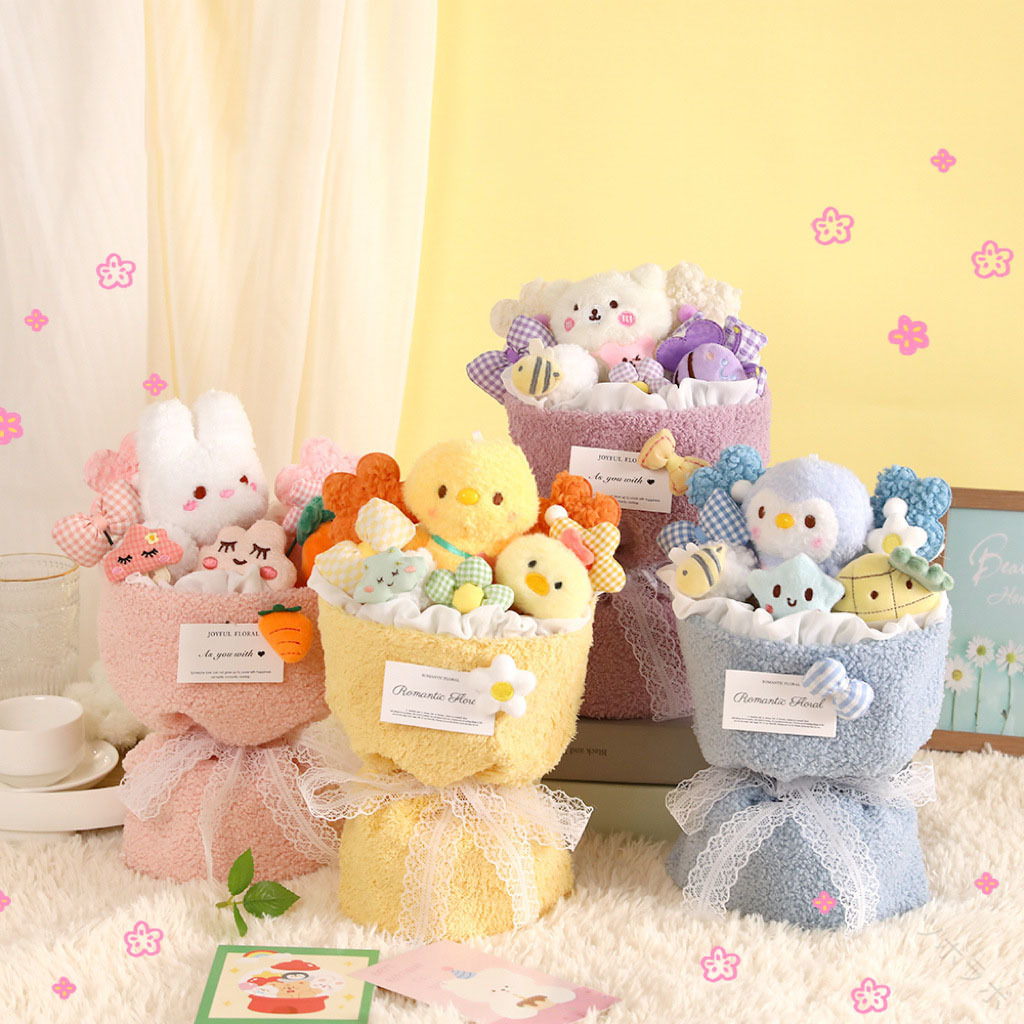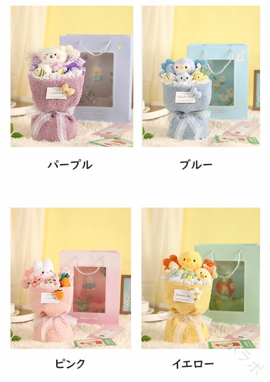 ぬいぐるみ 花束 花束ギフト 可愛い パープル ブルー ピンク イエロー