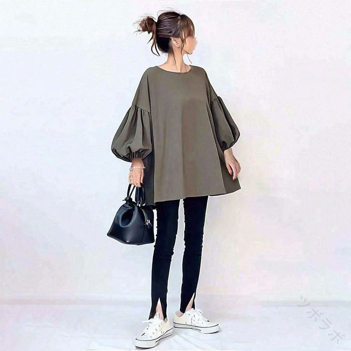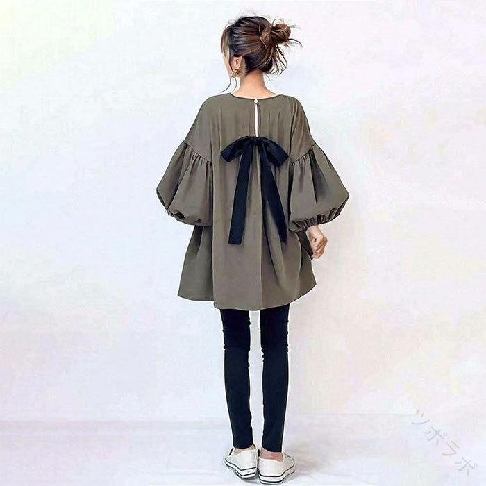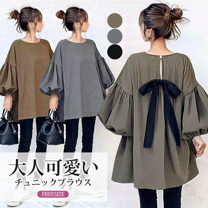 チュニック チュニックワンピース パフ レディースファッション 続々登場 ブラウン グレー グリーン