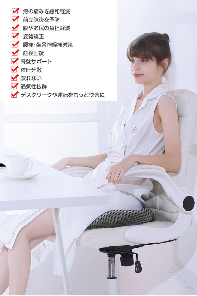 痔の痛みを軽減:U 型ですので、痔の痛みを軽減させるだけでなく尾てい骨の負担を軽減できます、両サイドからお尻を持ちあげるので、美尻効果もあります、さらに健康的な姿勢を促進します。